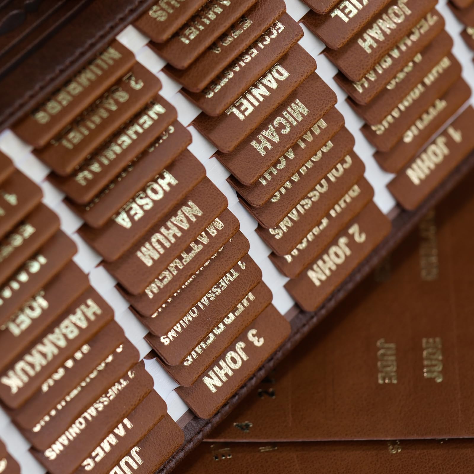 UPAFEXXI-Leather Bible Tabs, Bible Tabs for women and men(Gold Foil Lettering) Large Print Stickers, Easy to Read and Apply, 80 Chapters Labels for Easy Navigation(Brown)