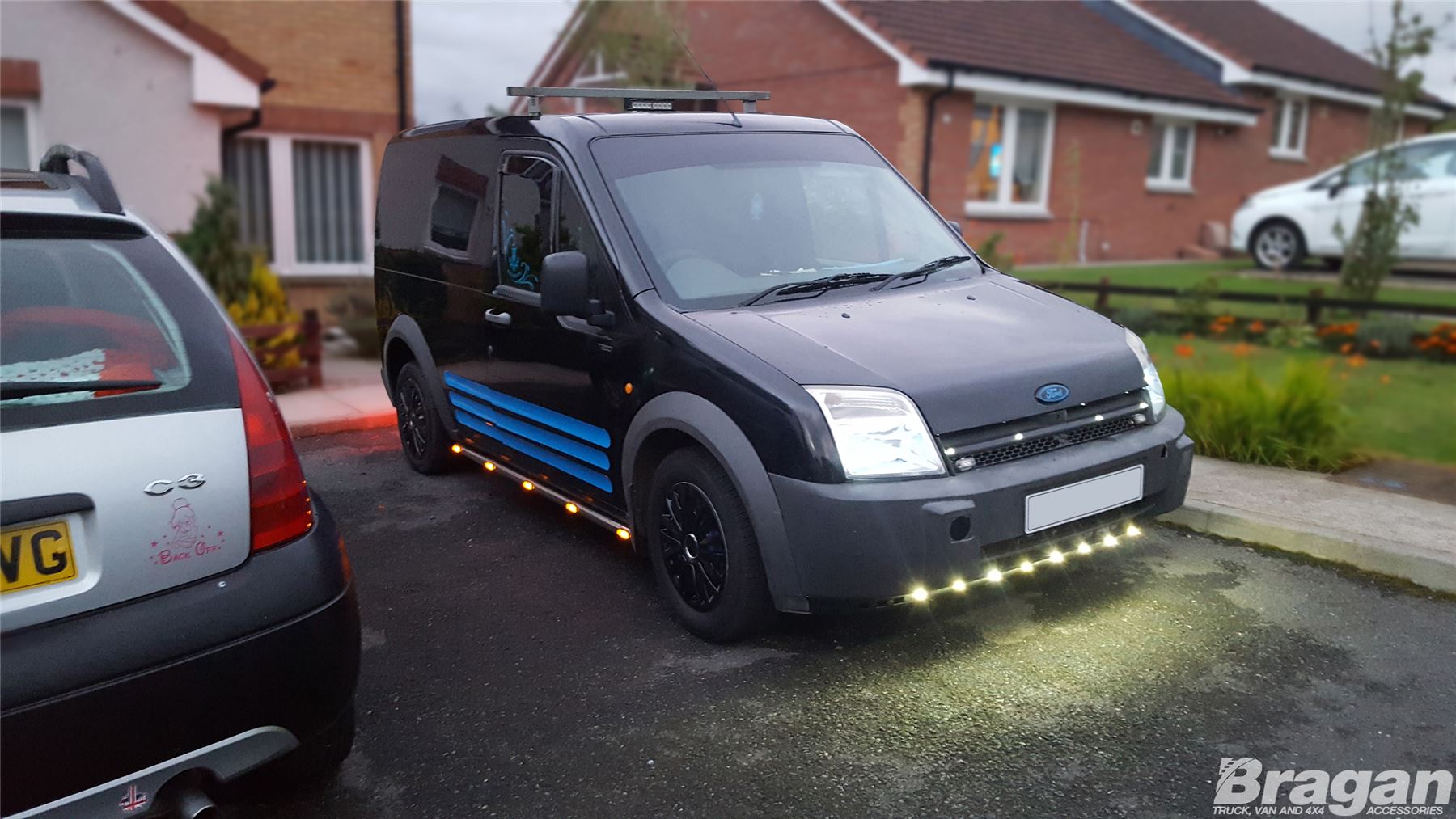 High quality Stainless Steel Side Bars with White LEDs x10 for Ford Transit / Tourneo Connect LWB (2002 - 2014 model). These top of the range side bars will have your Connect looking top spec at a fraction of the cost of the genuine items but with the same high quality.