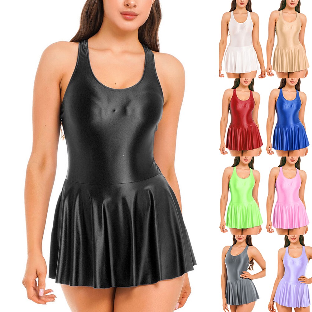 * Item Features:Women Glossy Stretchy Sleeveless Tank Dresses Solid Color Athletic Tennis Dress Nightdress Sleepwear