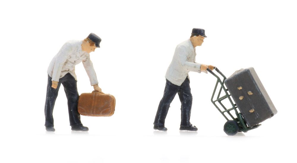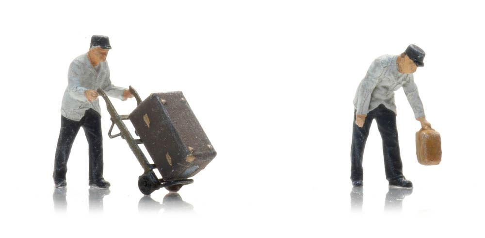 | Porters, sacktrucks and luggage Figures set N gauge P&D Marsh X86 |