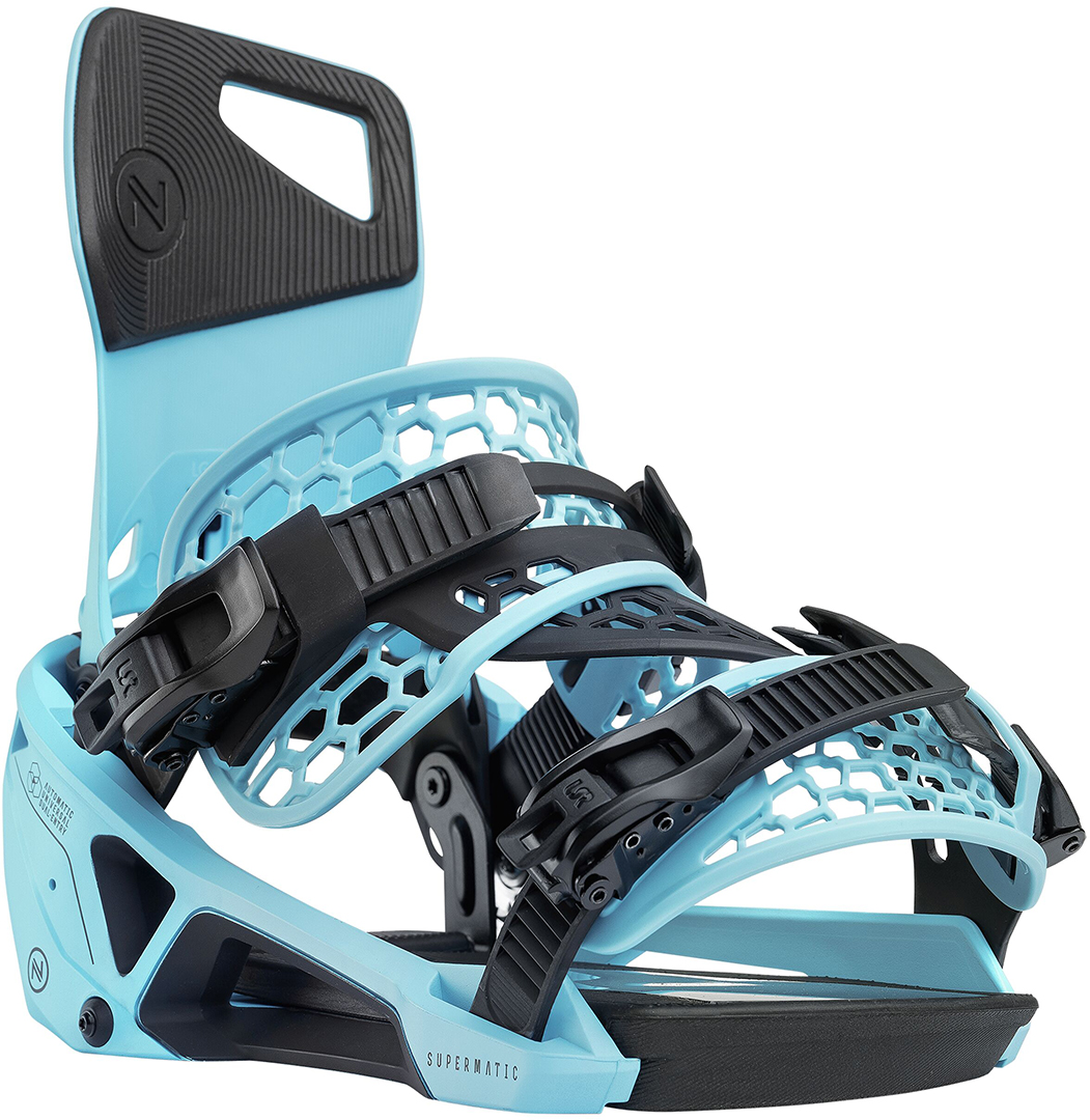 Die erste selbstschließende Zwei-Riemen-Bindung der Welt, die mit jedem Snowboardboot funktioniert. Rider Approved. Letztes Jahr hat sich alles geändert: Supermatic ist da. Die erste selbstschließende Zwei-Riemen-Bindung der Welt, die mit jedem Snowboard-Boot funktioniert. Ein einfaches, schneesicheres System, bei dem man die Schuhe nicht mehr wechseln muss und das man wie eine normale Bindung benutzen kann, wenn man sich irgendwo im Skigebiet oder im Tiefschnee befindet. Jetzt gibt es die Supermatic in drei neuen Farbvarianten - olivgrün, weiß und schwarz. Außerdem gibt es eine neue XL-Größe, so dass die Vorteile dieser neuen Bindung nun auch für Fahrer mit größeren Füßen verfügbar sind. Um Supermatic einzustellen, werden die Riemen an den Schuh angepasst und mit den LSR-Schnallen fixiert. Mit einem Druck auf den Auslösehebel an der Seite hebt sich das Fersenpedal, und der Hiback und die Riemen öffnen sich, so dass Sie Ihren Fuß herausnehmen können. Um wieder einzusteigen, schieben Sie den Stiefel hinein und nach unten, und er schließt sich von selbst. Es ist eine einfache, schlichte und elegante Lösung für alle, die schon immer dachten, dass die normale Art des Anschnallens besser sein könnte.Supermatic hat einen mittelsteifen Flex und ist eine solide Leistung für jede Art von All-Mountain-Riding. Wir haben ihn auf Pisten, steilen und tiefen Freeride-Lines und im Park mit einer Reihe von Fahrern getestet, von Amateuren bis hin zu Weltmeistern und Olympioniken, und er funktioniert überall - wirklich Rider Approved. Der Supermatic besteht aus den beliebtesten Teilen der Nidecker-Linie, wie dem bewährten glasgefüllten Nylon in der Baseplate. Das Asym Hadron Hiback, das speziell für Supermatic abgestimmt wurde, hat einen integrierten Neigungswinkelregler, mit dem Sie das Ansprechverhalten nach Ihren Wünschen einstellen können. Die Supermatic ist nicht für jeden geeignet, aber seien wir ehrlich - du verdienst eine Bindung, mit der du mehr Zeit mit dem Snowboarden verbringen kannst und weniger mit dem Herumprobieren, bevor du einsteigst.