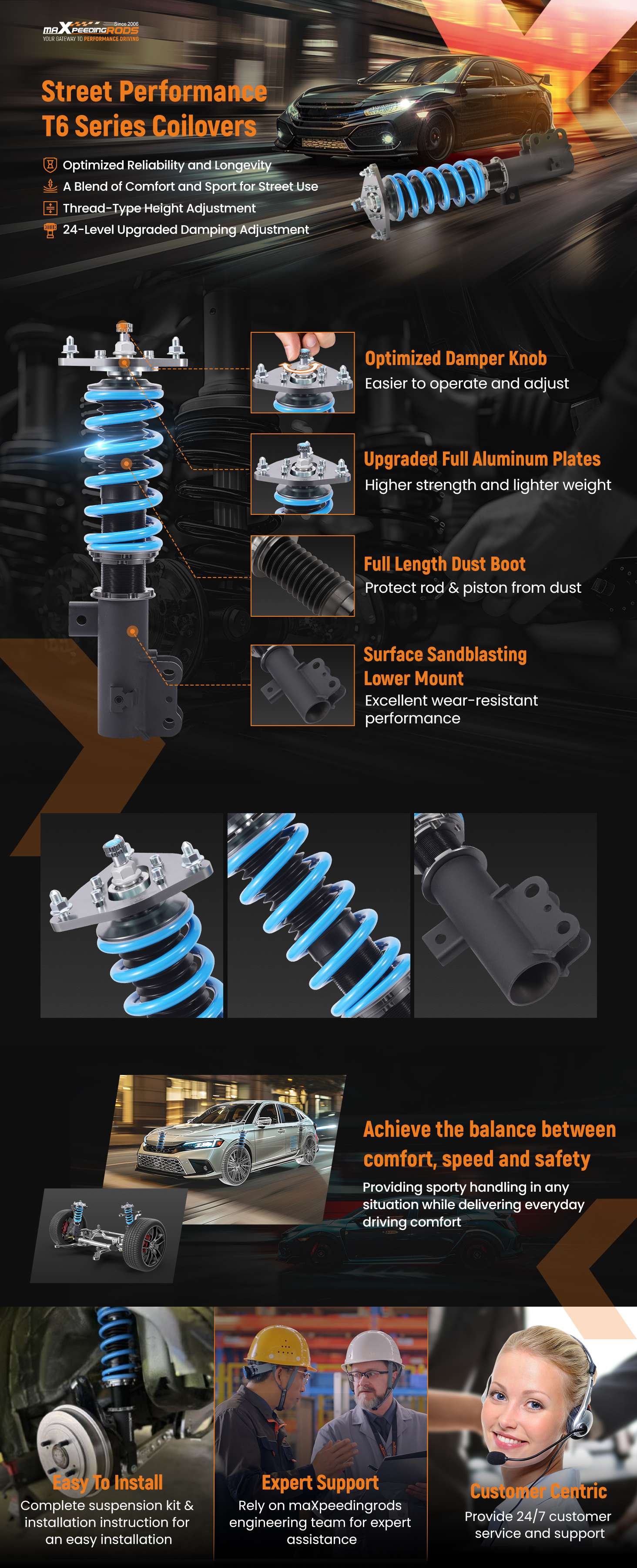 7. All inserts come with fitted long rubber boots--- To protect the damper more well and be durable.