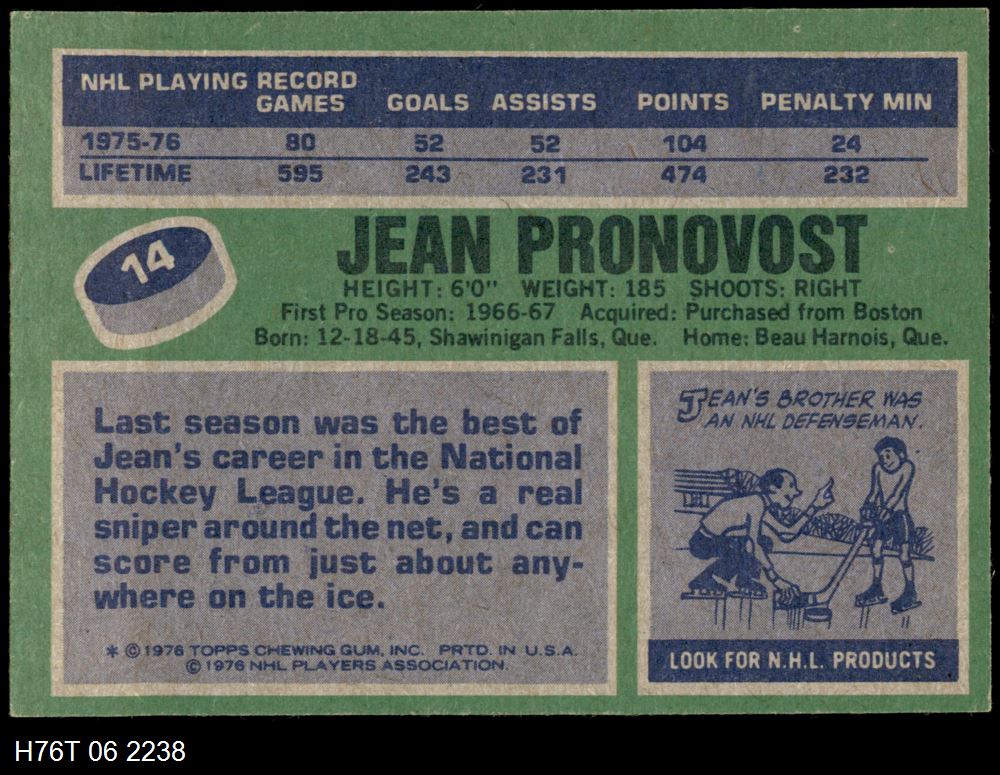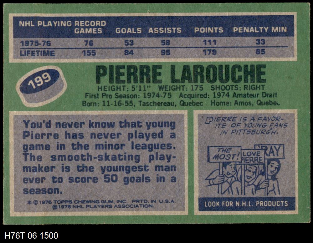 This near team set contains 16 cards out of the possible 19 cards. This is not a complete set. This set does not include the following cards: #1 Goals Leaders - Reggie Leach / Guy LaFleur / Pierre Larouche, #5 Power Play Goals - Phil Esposito / Guy LaFleur / Rick Martin / Pierre LaRouche / Denis Potvin, #218 Top Scoring Line - Lowell MacDonald / Syl Apps / Jean Pronovost