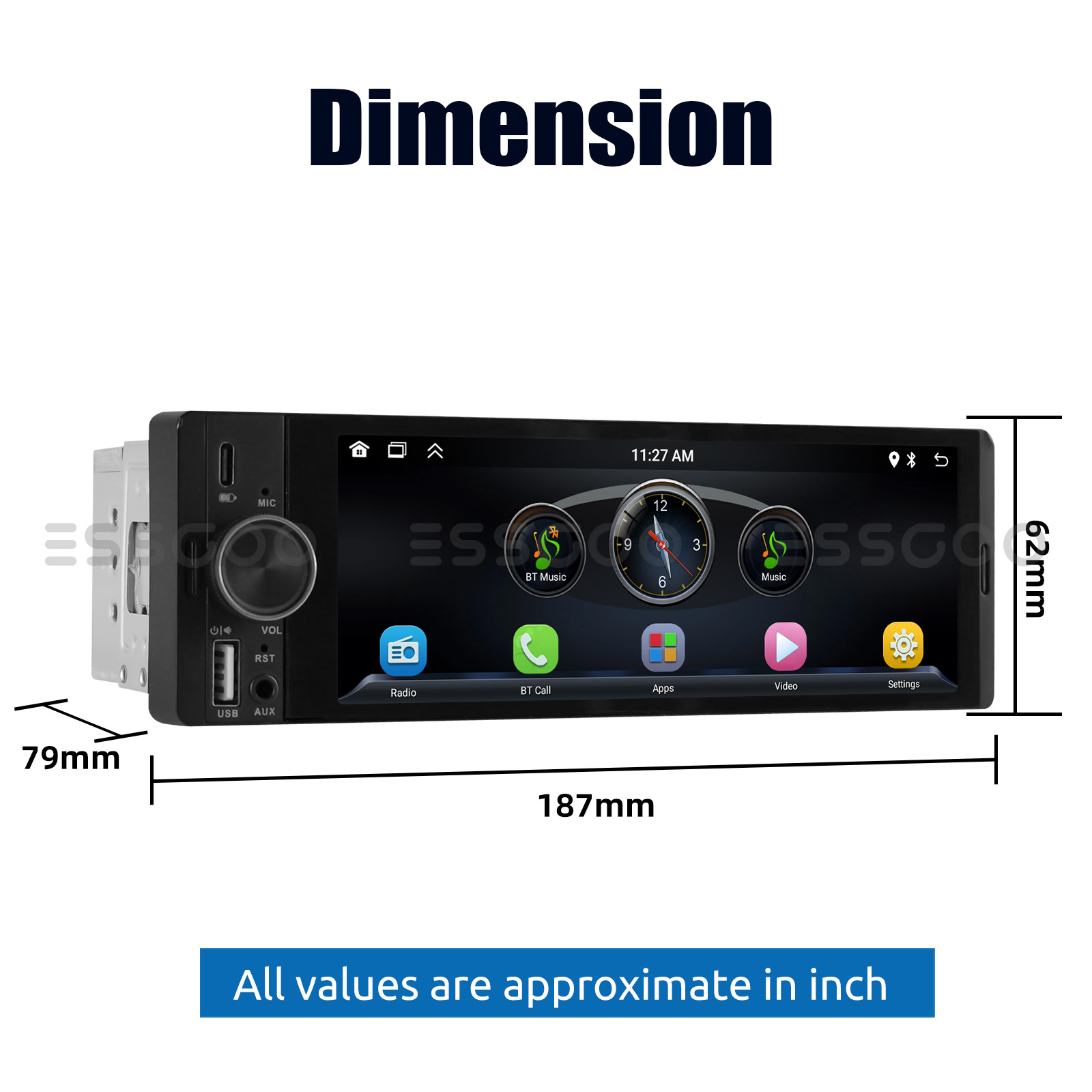 【1 DIN Car Radio】6.36 Inch HD capacitive touch screen, touch display area, touch button area, sensitive operation. Fully compatible with current mainstream video formats, supports HD picture quality, front channel output perfectly restores sound quality and improves sound performance.