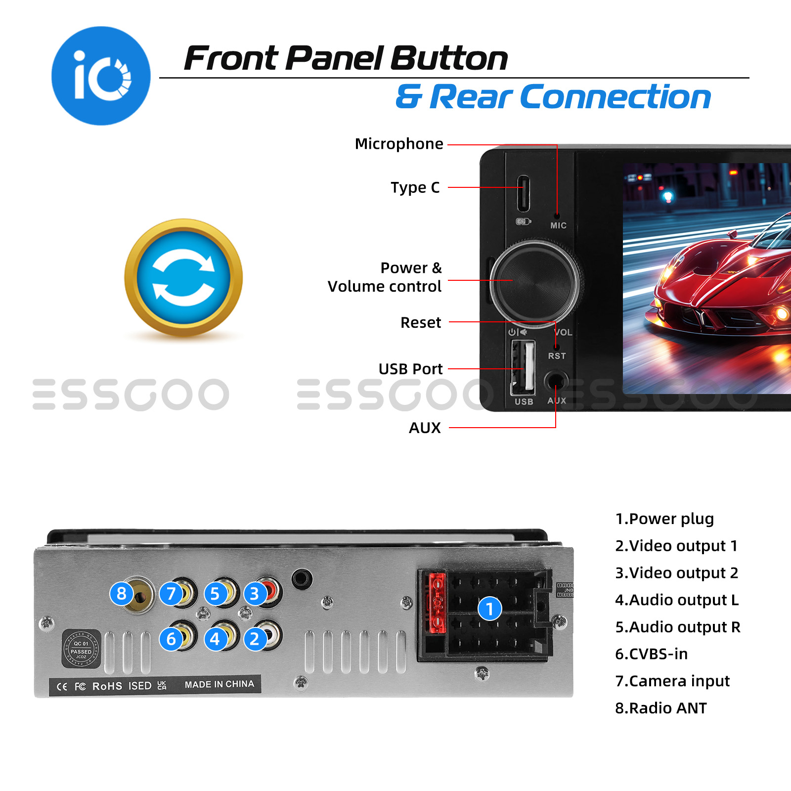 【FM Radio and Bluetooth】High quality FM radio for weather forecasts, live traffic information, news and more to make driving less boring. Supports saving 18 radio stations. Built-in car radio Bluetooth 5.0, supports hands-free calling, phonebook download and Bluetooth music playback.