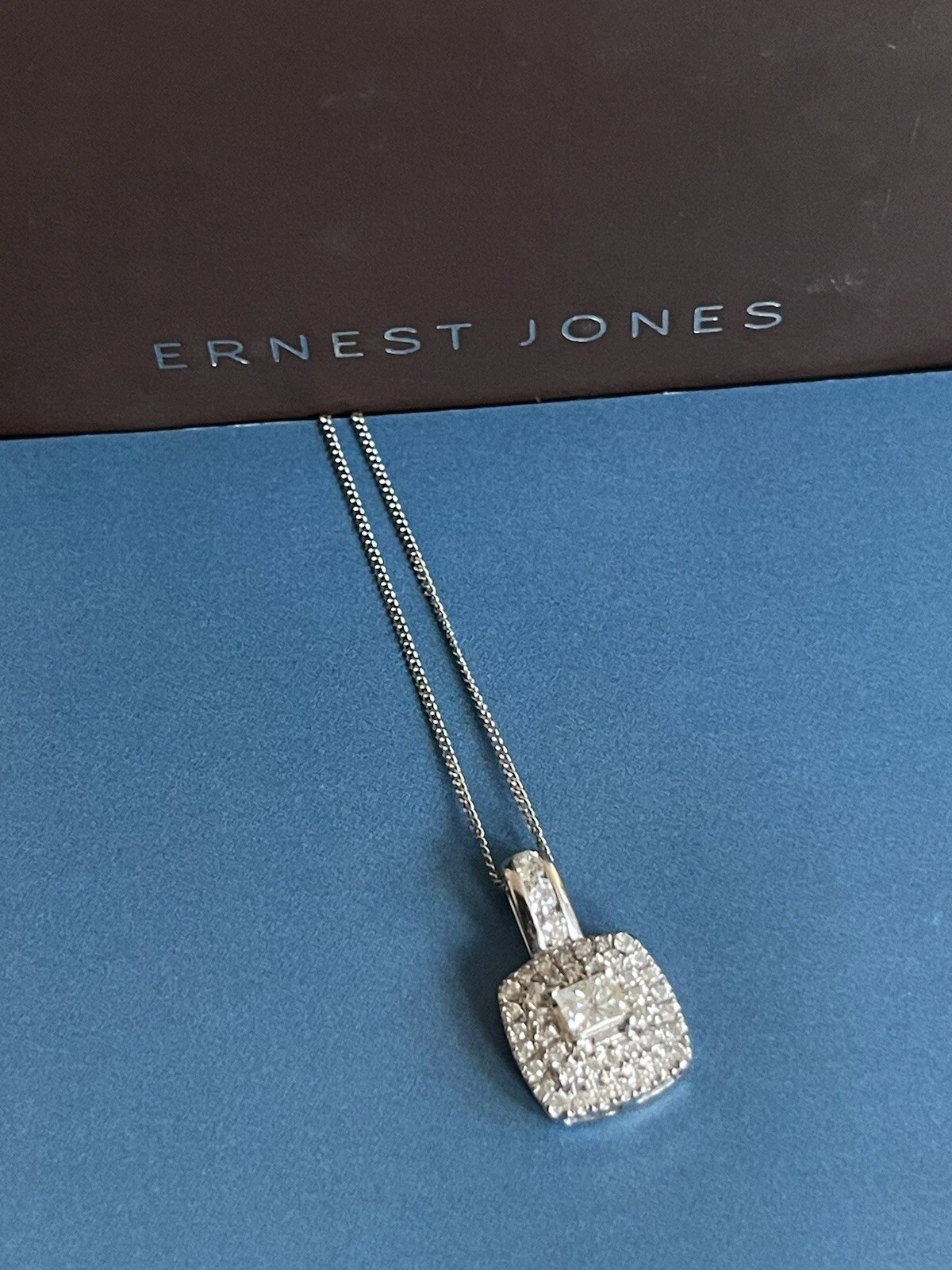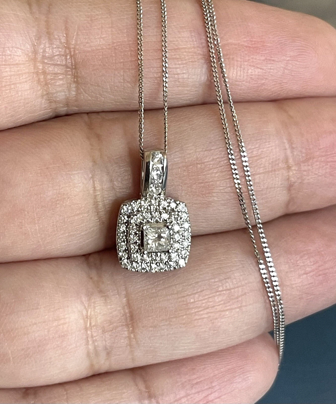 0.50ct Diamond Necklace in 9ct White Gold Square Halo Pendant Ernest Jones