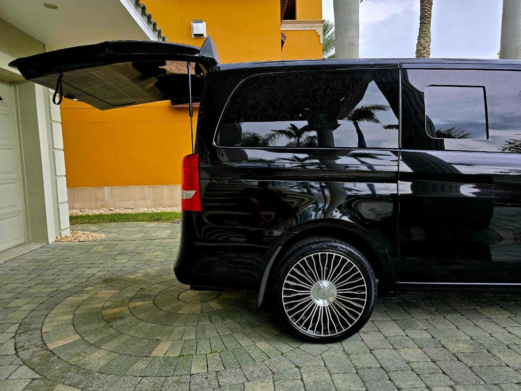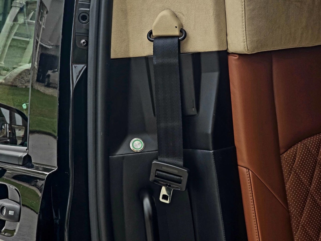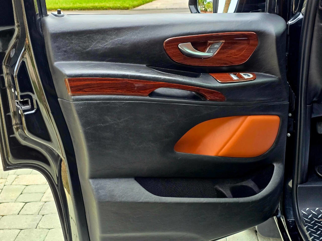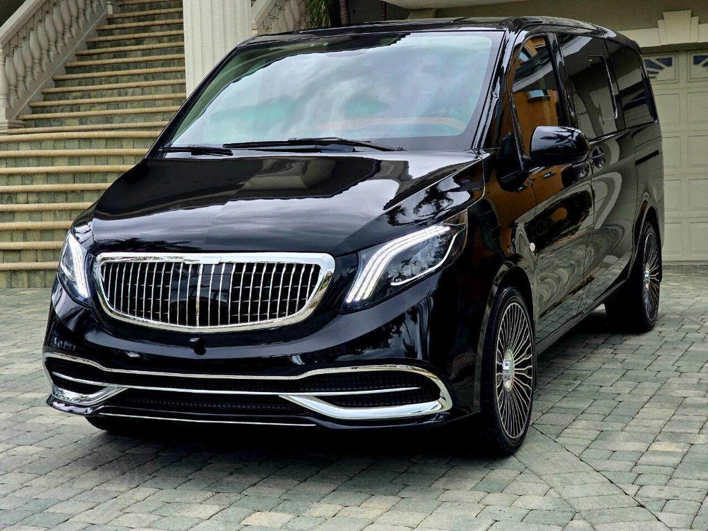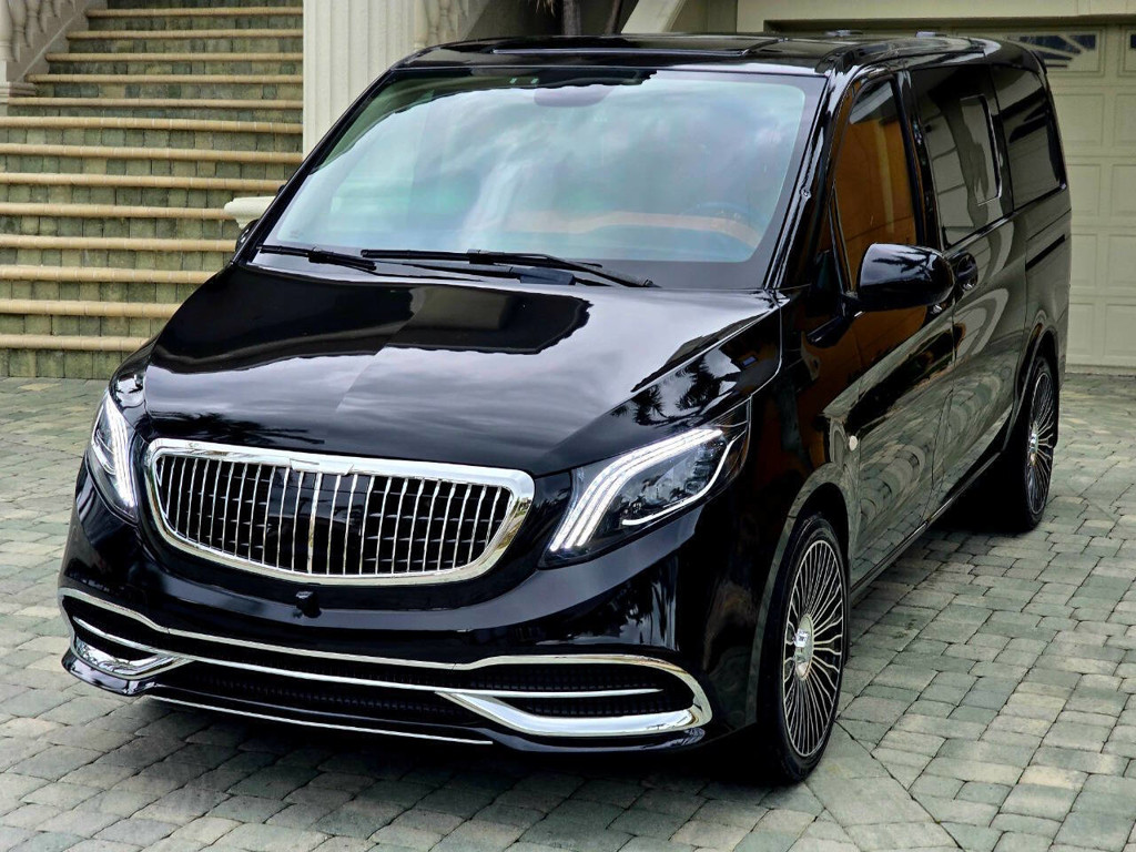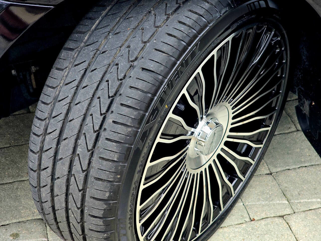 Open the doors and the first impression is unmistakably upscale. The exterior wears Maybach-style upgrades, including champagne-flute-style wheels wrapped in brand-new tires, projecting a commanding, bespoke presence before you even step inside. In the cabin, you’ll find a custom partition finished with a full-width flatscreen TV equipped with Apple TV, transforming the rear into a private entertainment suite. The rear seats ahead of the partition can slide forward and angle inward for extra space when needed, while power sliding doors on both sides provide effortless access. Rear passengers enjoy dedicated climate controls and a bank of command buttons that handle nearly every in-cabin function. Communication is seamless thanks to an integrated intercom system that allows easy conversation with the driver, while security cameras give rear passengers complete situational awareness. Enhancing the cabin atmosphere is elegant ambient lighting that softly illuminates the interior, creating a refined, lounge-like environment for evening travel. Entertainment continues with SiriusXM Radio and integrated media controls.
