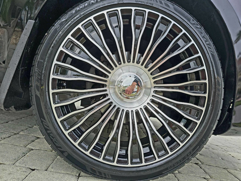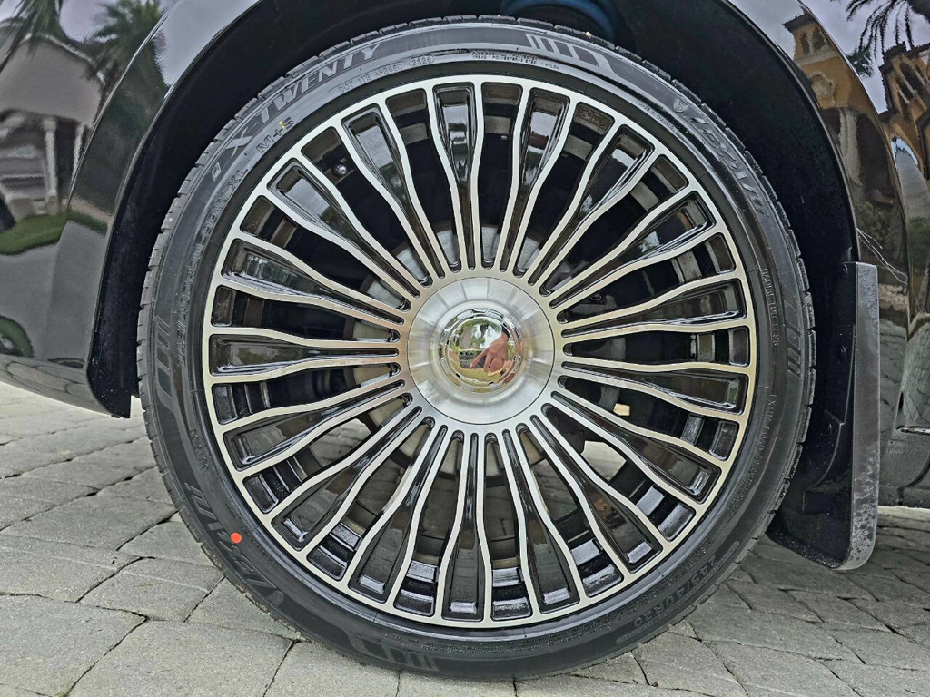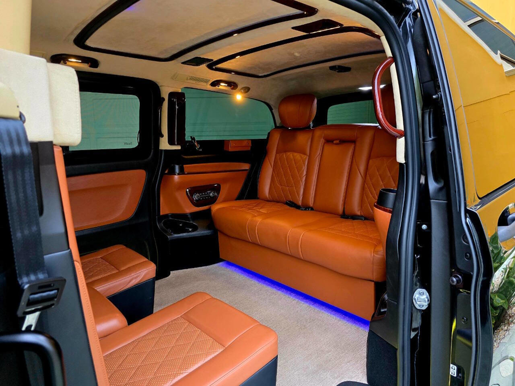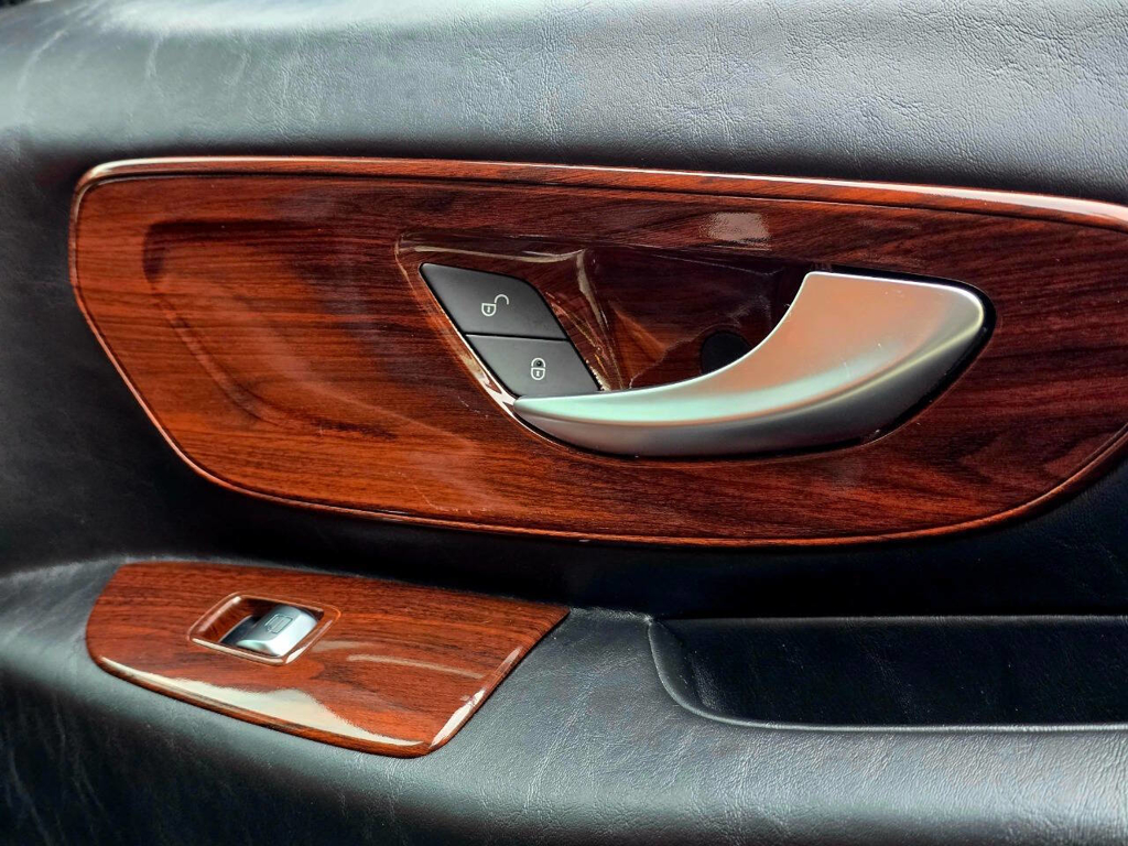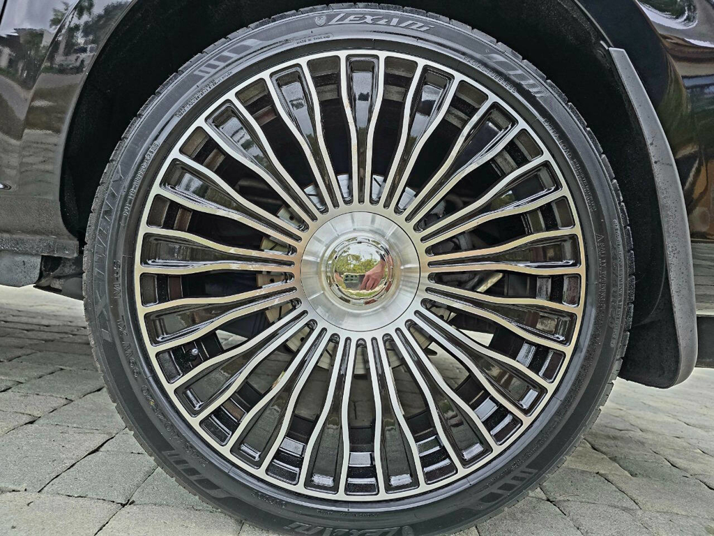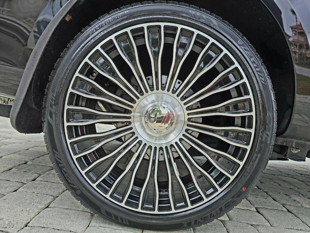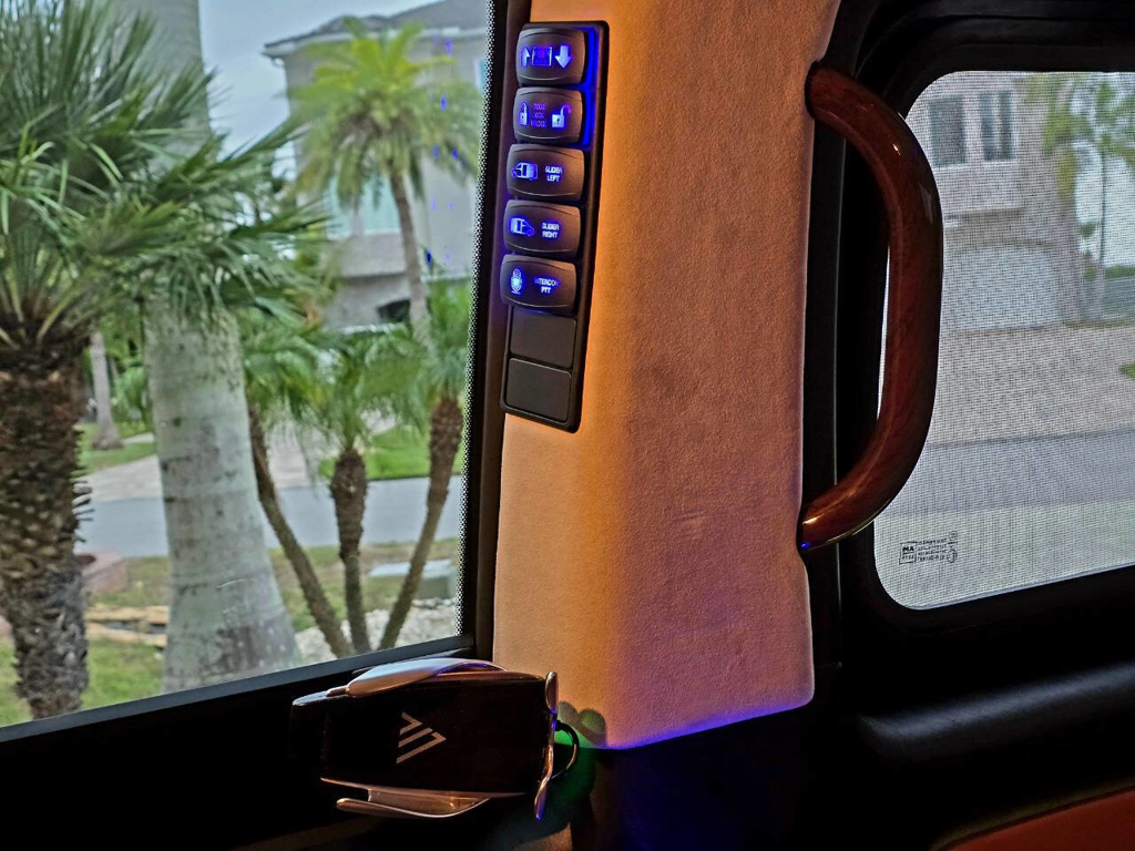 Open the doors and the first impression is unmistakably upscale. The exterior wears Maybach-style upgrades, including champagne-flute-style wheels wrapped in brand-new tires, projecting a commanding, bespoke presence before you even step inside. In the cabin, you’ll find a custom partition finished with a full-width flatscreen TV equipped with Apple TV, transforming the rear into a private entertainment suite. The rear seats ahead of the partition can slide forward and angle inward for extra space when needed, while power sliding doors on both sides provide effortless access. Rear passengers enjoy dedicated climate controls and a bank of command buttons that handle nearly every in-cabin function. Communication is seamless thanks to an integrated intercom system that allows easy conversation with the driver, while security cameras give rear passengers complete situational awareness. Enhancing the cabin atmosphere is elegant ambient lighting that softly illuminates the interior, creating a refined, lounge-like environment for evening travel. Entertainment continues with SiriusXM Radio and integrated media controls.