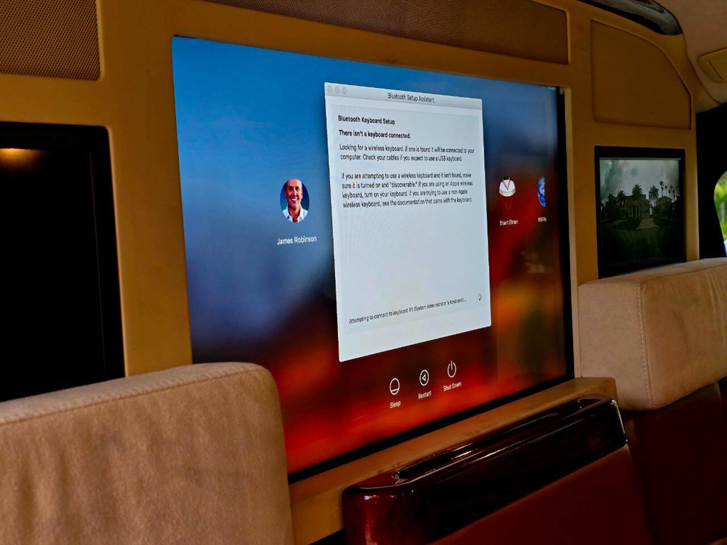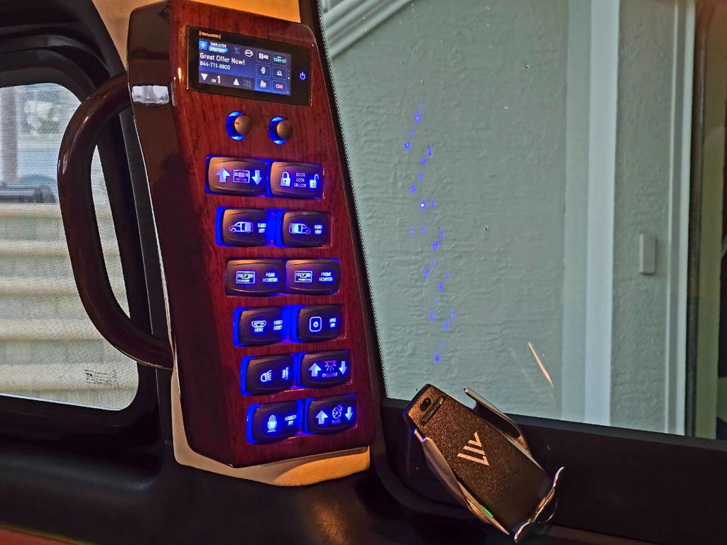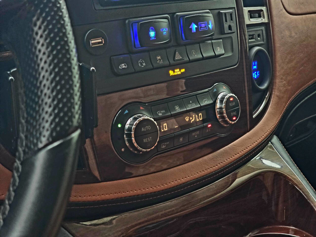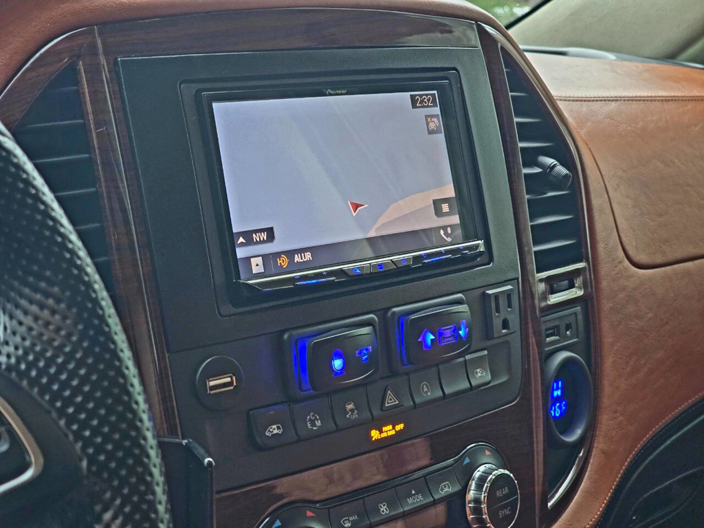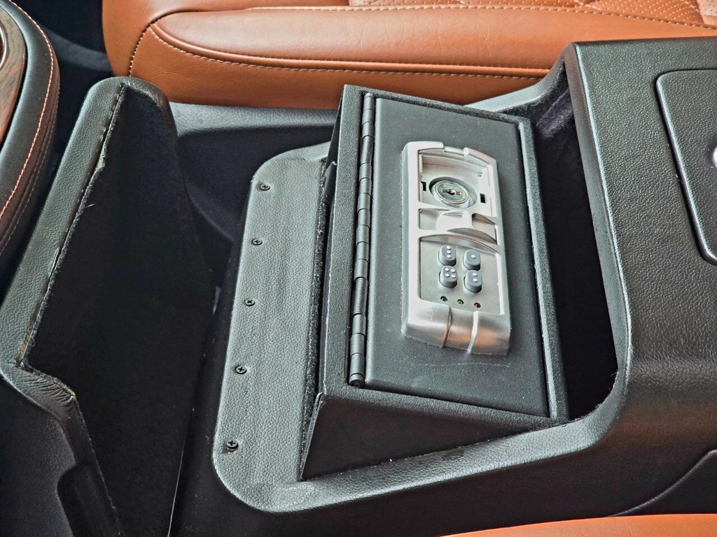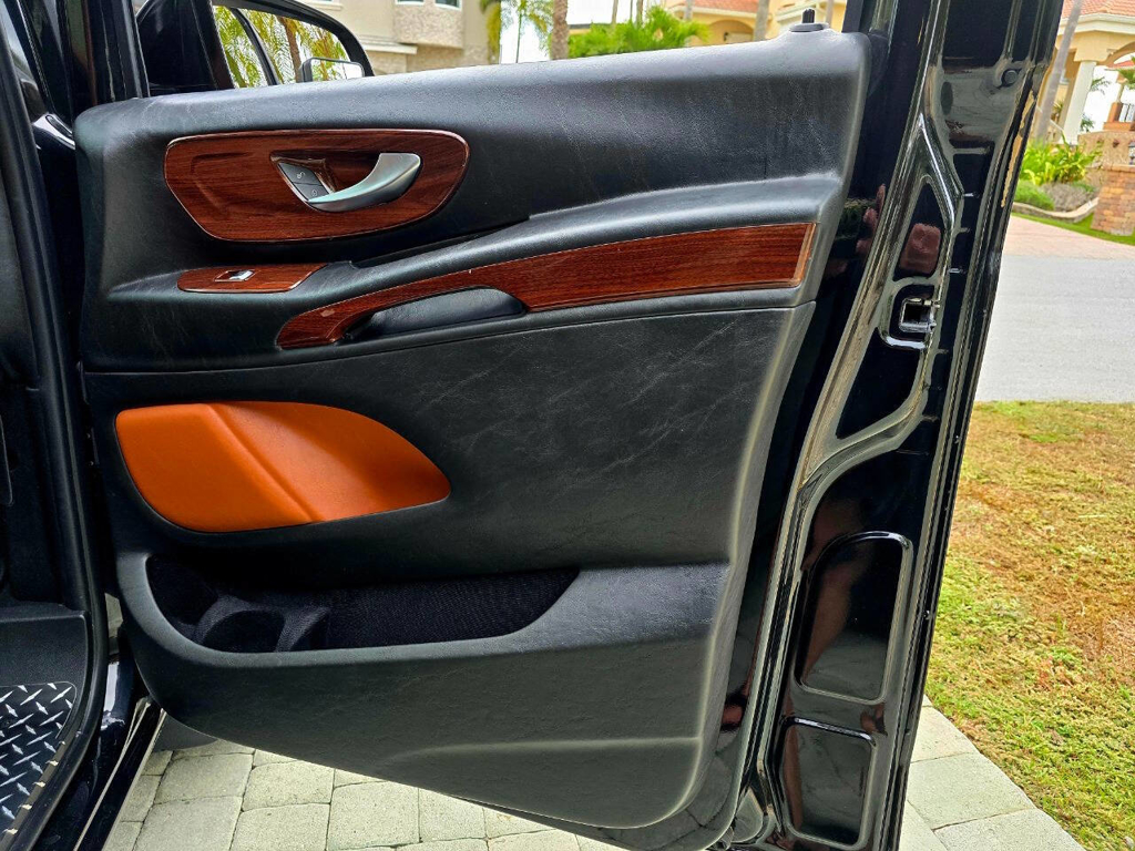 Open the doors and the first impression is unmistakably upscale. The exterior wears Maybach-style upgrades, including champagne-flute-style wheels wrapped in brand-new tires, projecting a commanding, bespoke presence before you even step inside. In the cabin, you’ll find a custom partition finished with a full-width flatscreen TV equipped with Apple TV, transforming the rear into a private entertainment suite. The rear seats ahead of the partition can slide forward and angle inward for extra space when needed, while power sliding doors on both sides provide effortless access. Rear passengers enjoy dedicated climate controls and a bank of command buttons that handle nearly every in-cabin function. Communication is seamless thanks to an integrated intercom system that allows easy conversation with the driver, while security cameras give rear passengers complete situational awareness. Enhancing the cabin atmosphere is elegant ambient lighting that softly illuminates the interior, creating a refined, lounge-like environment for evening travel. Entertainment continues with SiriusXM Radio and integrated media controls.