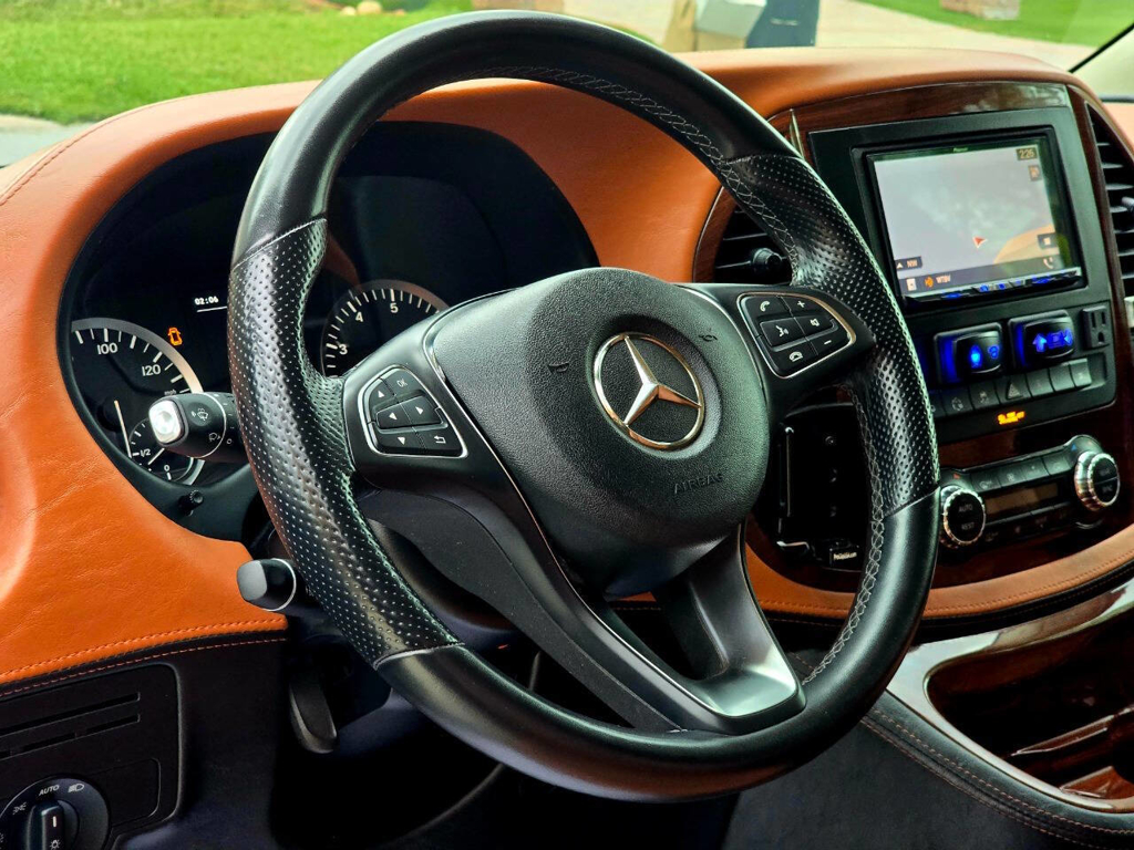 Under the hood lies Mercedes-Benz’s 2.0-liter turbocharged inline-four paired to a 7-speed automatic transmission driving the rear wheels. This engine produces smooth, energetic acceleration and outstanding flexibility for its class, while the air-suspension controller allows the driver to tailor ride height and comfort on demand. Whether you’re chauffeuring executives, family, or clients, this Metris delivers the poised ride quality and versatility that make it stand out among people-movers.
