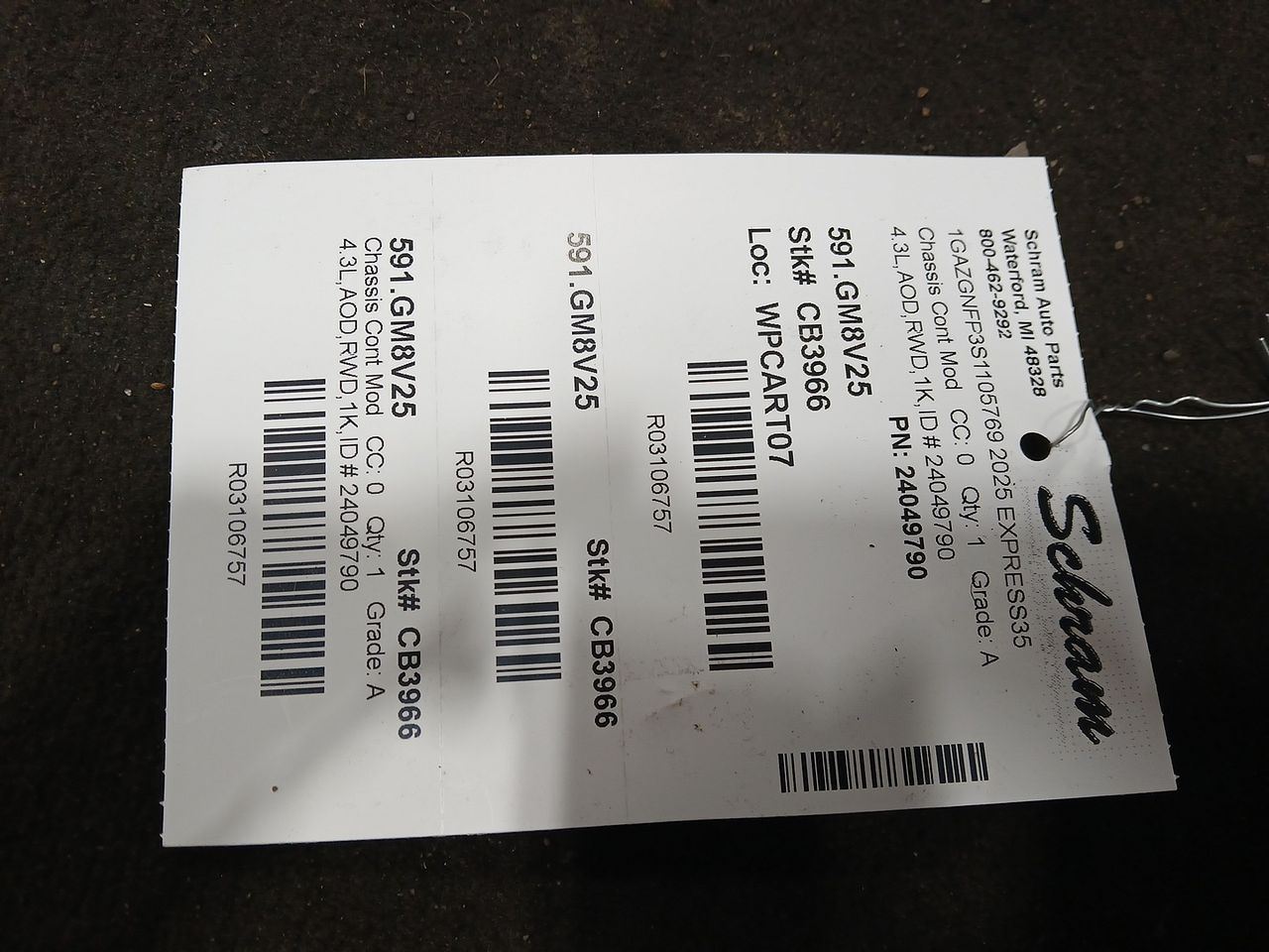 4.3L,AOD,RWD,1K,ID # 24049790 Original Equipment Chassis Control Module Schram Auto Parts - OEM Chassis Electronics Fitment: Please Confirm Before Purchase This listing is for an OEM Chassis Control Module. This module may include applications such as Transmission Control Module (TCM), Body Control Module (BCM), Human Machine Interface (HMI), or other electronic control units. It has been thoroughly inspected and cleaned for resale, unless otherwise noted. Important Programming Requirement Please be aware that this control module may require programming or configuration by a dealership or certified technician before it will function properly in your vehicle. Additional components or procedures may be needed depending on your vehicle's specifications. Be sure to research requirements for your make and model. Make an Informed Purchase Fitment is the buyer's responsibility. Please use the part number, photos, and item details to confirm compatibility with your vehicle. If uncertain, consult your technician or local dealer with your VIN. Questions? Ask for Chad If you need help or have questions about this chassis control module, feel free to message us on eBay or call and ask for Chad. We are happy to help verify fitment and support your installation needs. Thank you for choosing Schram Auto Parts. We've provided quality OEM parts and service since 1923.