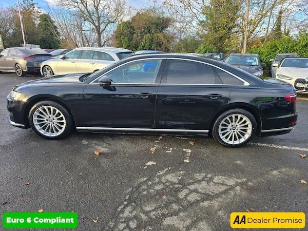 The Audi A8 TDI V6 S line is a 2021 model, boasting a powerful 3.0L Diesel Engine and Four Wheel Drive drivetrain, making it a capable and confident performer on the road. This S line variant is equipped with a range of premium features, including the Audi Phone Box with Wireless Charging, allowing you to keep your devices powered up on the go. The Advanced Key system provides the convenience of keyless entry, while the Comfort Contour Seats, complete with memory function, ensure a tailored driving experience. The Audi HD Matrix LED Headlights provide exceptional visibility, and the Head-Up Display keeps essential information within your line of sight. With a full service history, including a recent service at 45,050 miles in July 2025, you can trust that this vehicle has been well-maintained. This Audi A8 TDI V6 S line is a force to be reckoned with, accelerating from 0-60mph in a swift 5.9 seconds. As a Euro 6 compliant vehicle, you can drive with the knowledge that youre meeting the latest emissions standards. With a 12-month MOT provided, you can enjoy peace of mind on the road. The vehicle also comes with a 3-month warranty, giving you added protection. Whether youre looking for a luxurious driving experience or a reliable companion for long journeys, the Audi A8 TDI V6 S line is an excellent choice. Its impressive performance and advanced features make it stand out from similar vehicles in its class, offering a unique blend of power, comfort, and technology. Opening hours are 9.00am - 5.30pm Mon to Sat and 10.30am-5pm Sun.. All major debit cards accepted. Finance and Warranties are available. Approved Cars make it our business to try to get you a good deal on your purchase & if you require finance we can help no matter what your financial situation. The vehicle specifications are provided by Autotrader and may differ from the actual vehicle. Please verify that the features most important to you are present, as the specifications are auto-generated by Autotrader. All of our cars are HPI checked and come with a 3-month mechanical breakdown warranty as standard (excluding trade clearance cars), HPI certificate & MOT print out. We also offer a drive away same day facility and a home delivery facility. We can face time you a live demo of the car of your choice upon request.19in Alloy Wheels - 15-Spoke Design Cast, 2-Zone Automatic Air Conditioning, 3-seat Rear Bench with Centre Armrest, 4-Way Electric Lumbar Support, ABS - Anti-Lock Braking System, Acoustic Double Glazing, Adaptive Air Suspension, Adaptive Cruise Control with Speed Limiter, Adaptive Cruise Control with Stop&Go, Advanced Key, AMI - Audi Music Interface, Anti-Theft Alarm with Tow-Away Protection, Anti-Theft Wheel Bolts and Wheel Loosening Warning, ASF - Audi Space Frame, Audi Connect, Audi Connect Safety and Service - e-call, Audi Drive Select, Audi HD Matrix LED Headlights, Audi Phone Box with Wireless Charging, Audi Pre-Sense Basic, Audi Pre-Sense Front, Audi Sound System, Audi Virtual Cockpit, Audi Wireless Smartphone Interface, Body Coloured Door Mirrors, Camera-Based Traffic Sign Recognition, Chrome Exterior Styling, Cloth Headlining in Black, Comfort Centre Armrest - Front, Comfort Contour Seats, Connect Package Plus, DAB Digital Radio, Door Mirrors - Electrically Adjustable - Heated - Folding - Automatically Dimming with Memory Function and Integrated LED Indicator, Driver and Front Passenger Airbag, Electric Auxiliary Air Heater, Electric Front Seats with Memory Function, Electric Windows - Front, Extended Pedestrian Protection, First Aid Kit and Warning Triangle, Front and Rear Brake Calipers - Painted Black, Front and Rear Floor Mats, Front Reading Lights, Gear Knob - Leather, Glove Compartment Cooling, Head Restraints - Rear, Head-Up Display, Heated Front Seats, High-Beam Assist, Hill Hold Assist, ISOFIX Child Seat Mounting for Outer Rear Seats, LED Interior Light Package, LED Rear Combination Lamps with Dynamic Turn Signal, Lower Inlays in Dark Matt Brushed Aluminium, MMI Navigation Plus including MMI Touch, Mythos Black, Operating Buttons in Black - Glass with Extended Aluminium, Parking System Plus - Front and Rear Sensors, Power Door Closure, Power Operated Tailgate, Premium MMI Radio Plus, Privacy Glass, quattro All-Wheel Drive with Self-Locking Centre Differential, Rear-View Camera, Seat Belt Reminder, Side Airbags - Front and Rear Head Airbag System, Side and Rear Windows in Heat-Insulating Glass, Sport Exterior Styling, Sun Visors with Illuminated Vanity Mirrors on Driver and Front Passenger Side, Twin-Spoke Leather Multi-Function Steering Wheel with Shift Paddles, Tyre Pressure Warning Light, Tyre Repair Kit, Upper Inlays - Fine Grain Ash - Natural Grey Brown, Valcona Leather - Sports Seats with S Embossed Logo - Black, Windscreen with
