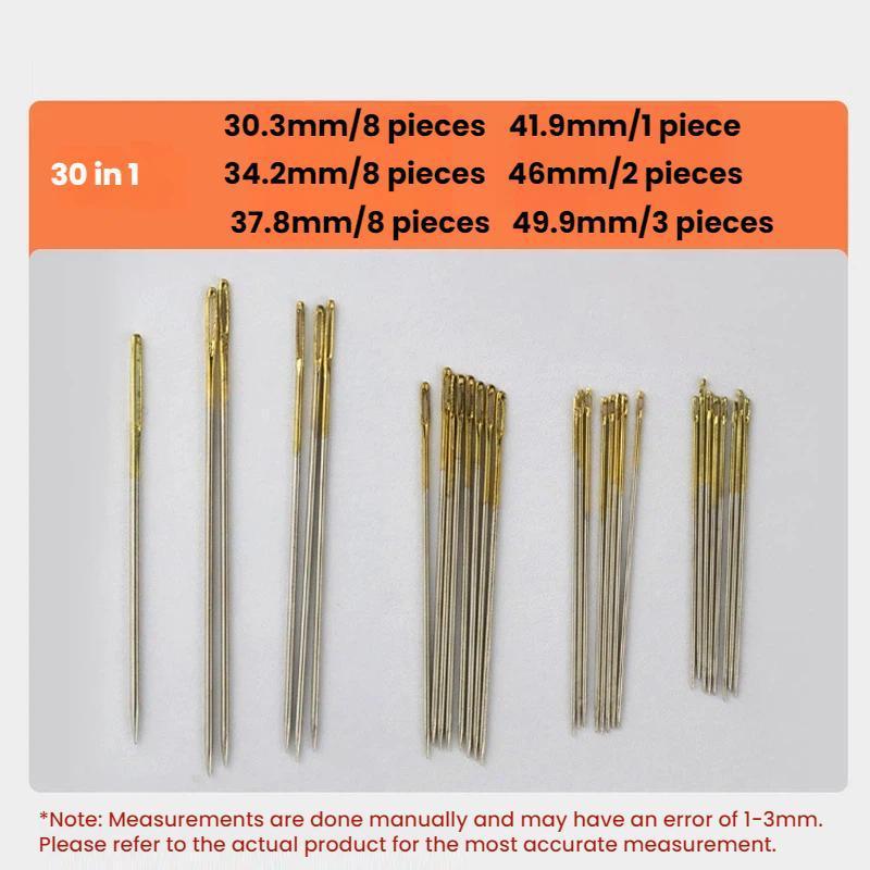 5. Ojal grande con punta dorada para un fácil enhebrado; ojo de aguja liso sin manchas.