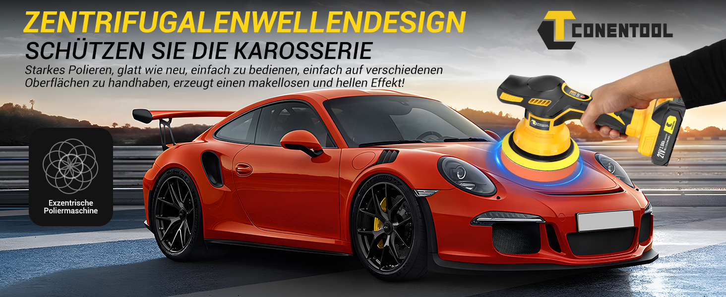 Das zentrifugale Wellendesign verteilt den Druck gleichmäßig und reduziert das Risiko von Lackbeschädigungen. So können auch empfindliche Oberflächen wie Autolack oder Möbel schonend bearbeitet werden.