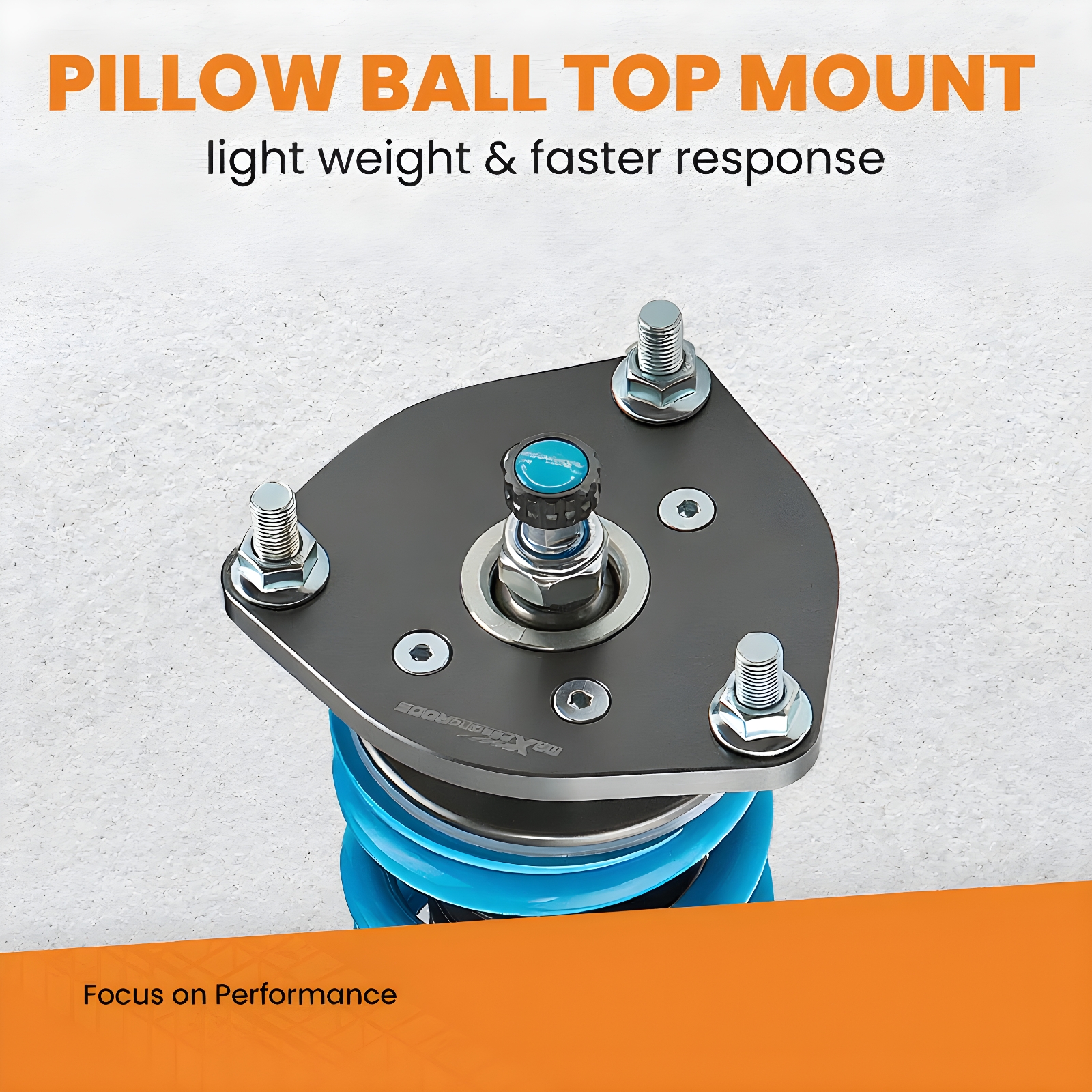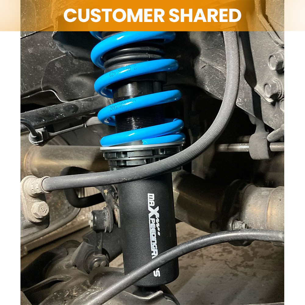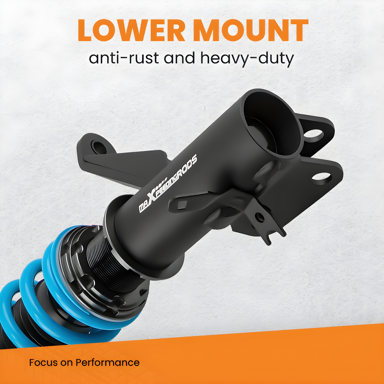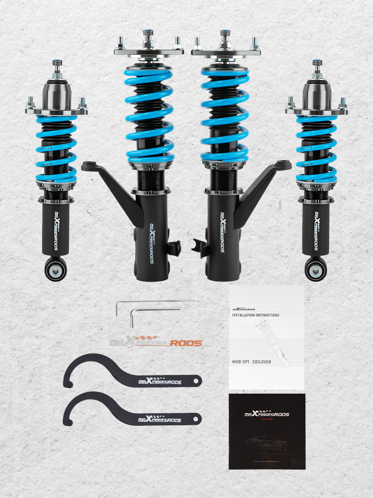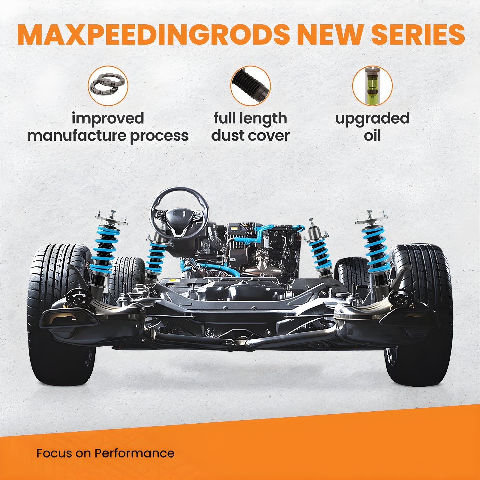 maXpeedingrods T6 lowering coil-over, standard with adjustable rebound damping, separate height adjustment without changing preload, developed damping oil and upgraded racing springs, adjustable camber plate(for some vehicles), and decent outlook, offers you more ability to tune your suspension on performance and gives your vehicle more impressive appearance. Besides, all our coil-overs are assembled in a dust-free factory, which turns out good quality and long life.