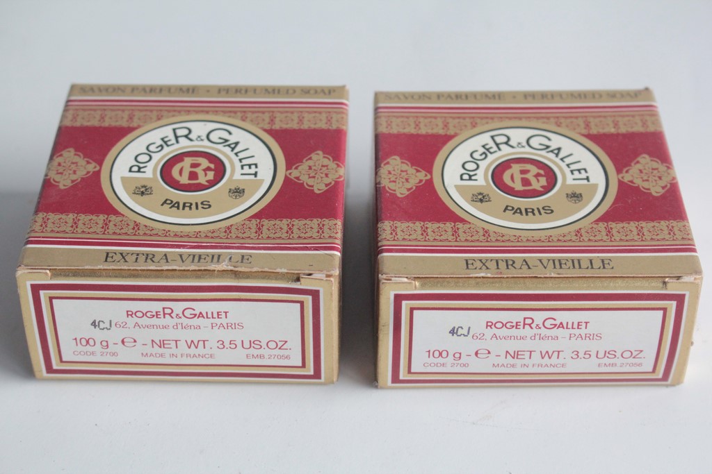 2 Anciennes boites de savons parfumés Extra-Vieille par Roger & Gallet