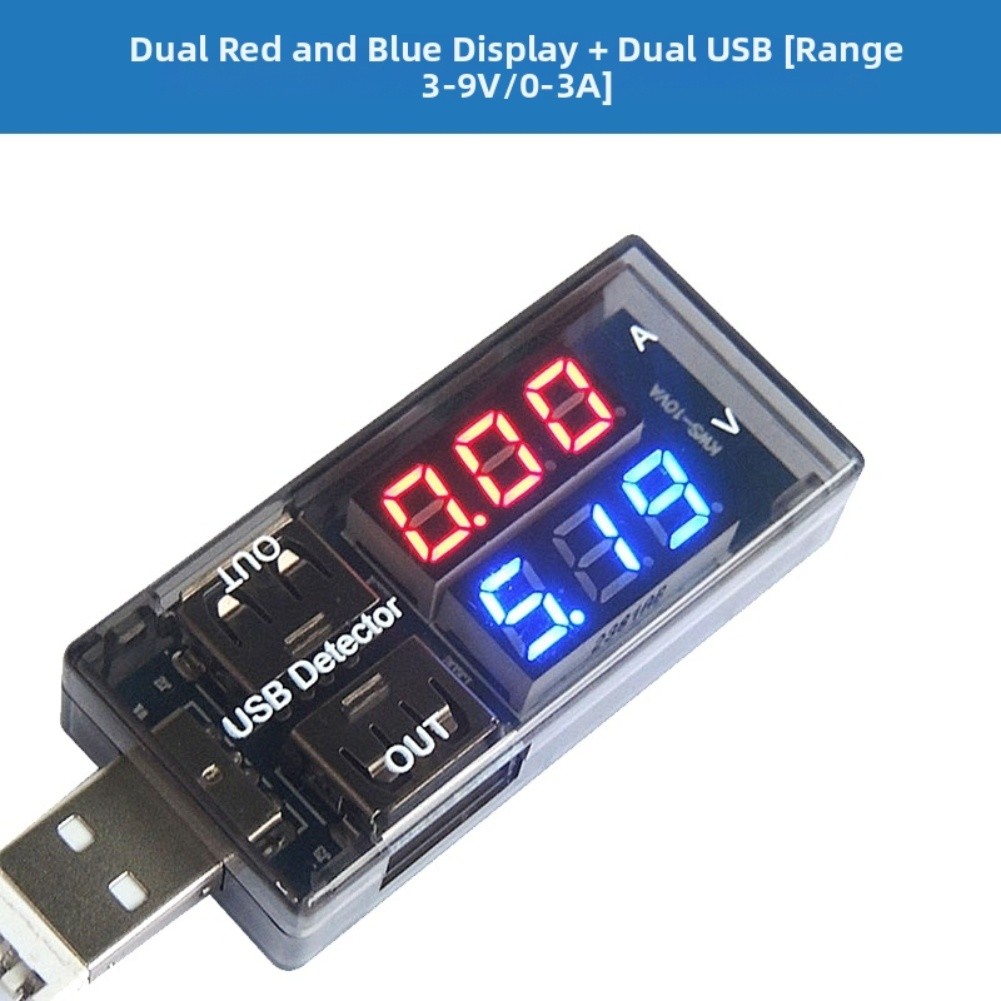 This dual USB meter displays both voltage and current during USB charging or discharging on the same screen, and can alternately or individually display capacity and power.