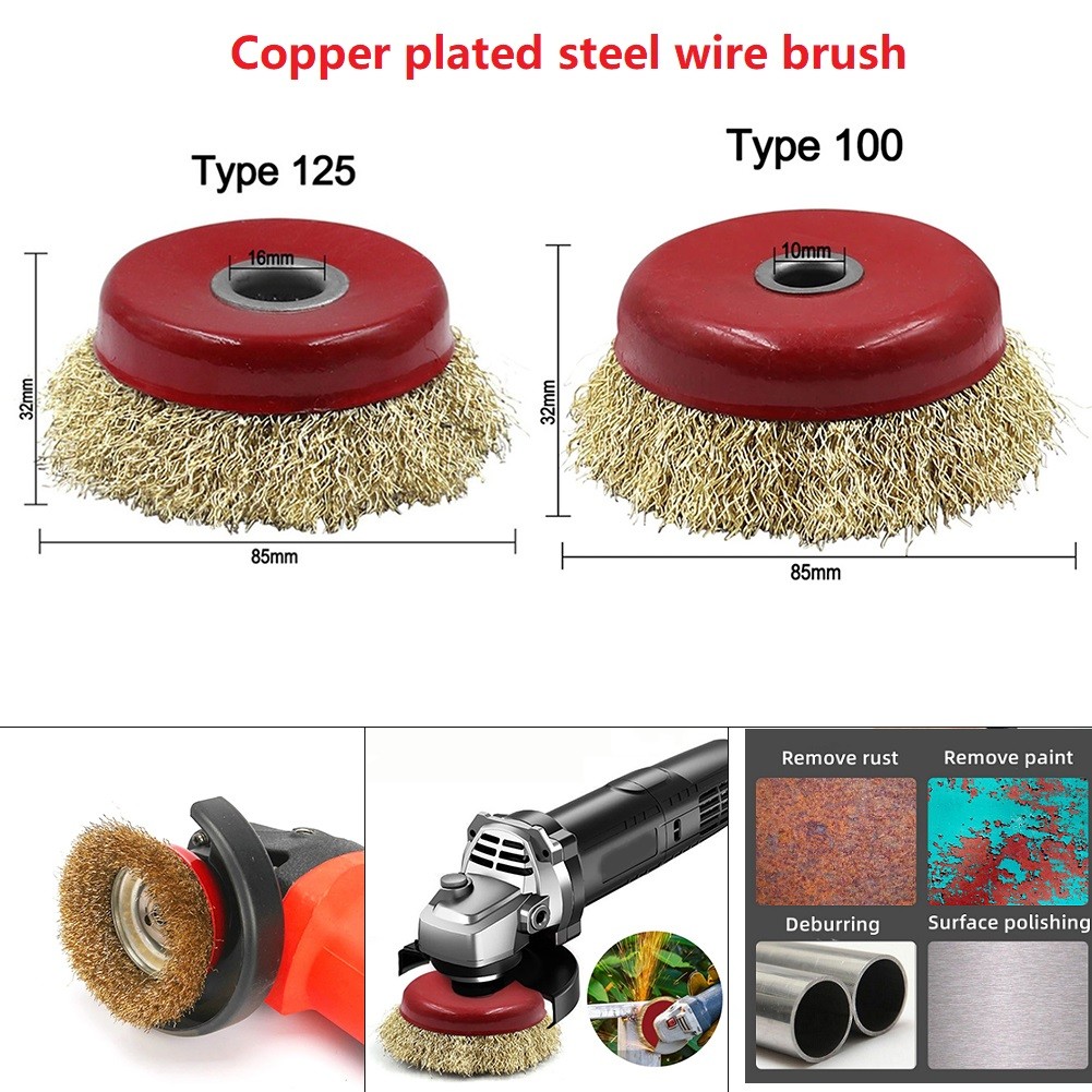 Brosse fil d'acier plaqué cuivre meule ébavurage ébavurage outil de polissage
