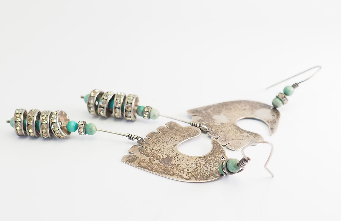 vintage 1987 unique en son genre en argent sterling fait à la main, cristaux, boucles d’oreilles turquoise pendantes Bird par Senufa Salley. Chacun mesure 4" de long à partir du cerceau. L'oiseau mesure 1,25" x 1,4". Le poids total est de 16 grammes. Bon état.