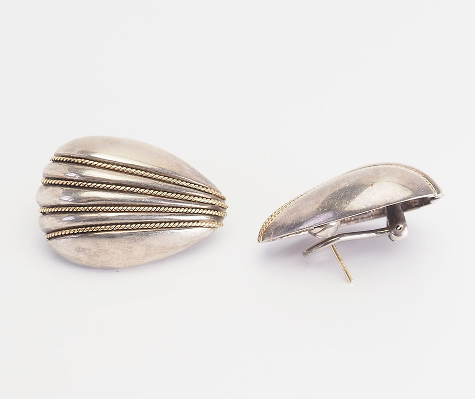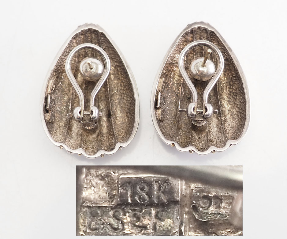 Boucles d'oreilles vintage en argent sterling et détails en or 18 carats par Black Starr & Frost, BS&F. Chaque boucle d'oreille mesure 1,2" de long x 0,8" au point le plus large. Le poids total est de 19 grammes. Bon état.
