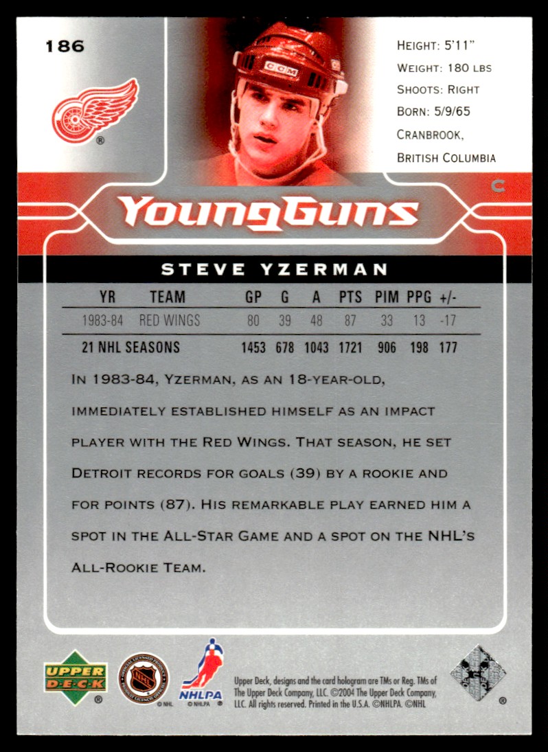 | 2004-05 Upper Deck Young Guns Steve Yzerman Detroit Red Wings #186 | ||||||||||||||||