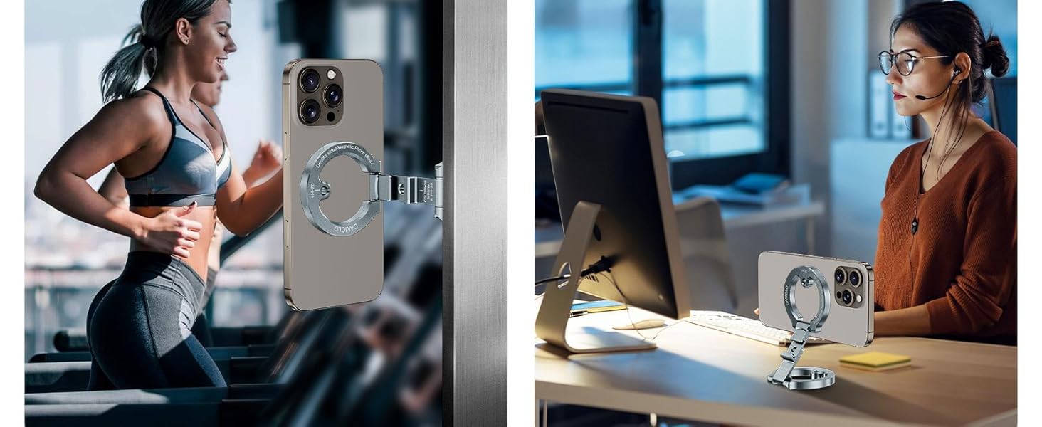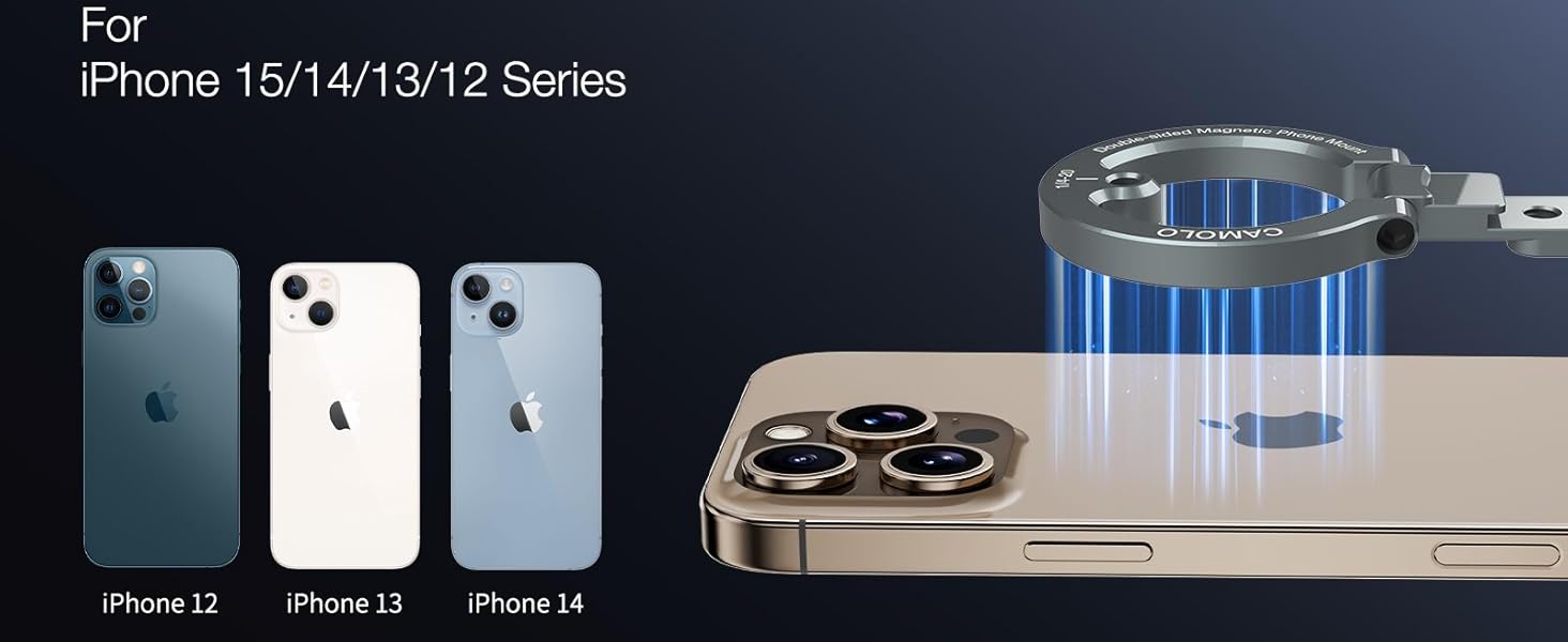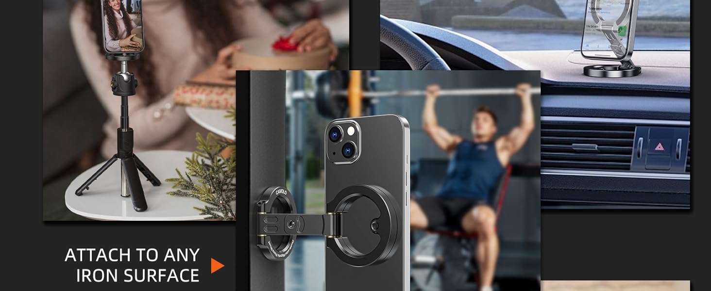 The CAMOLO Dual Magnetic Phone Holder is the perfect accessory for your Magsafe iPhone. Its high-powered magnets ensure a secure hold, while the 1/4" screw tripod mount allows for easy hands-free use. Whether at the gym or traveling, this versatile phone stand has got you covered.