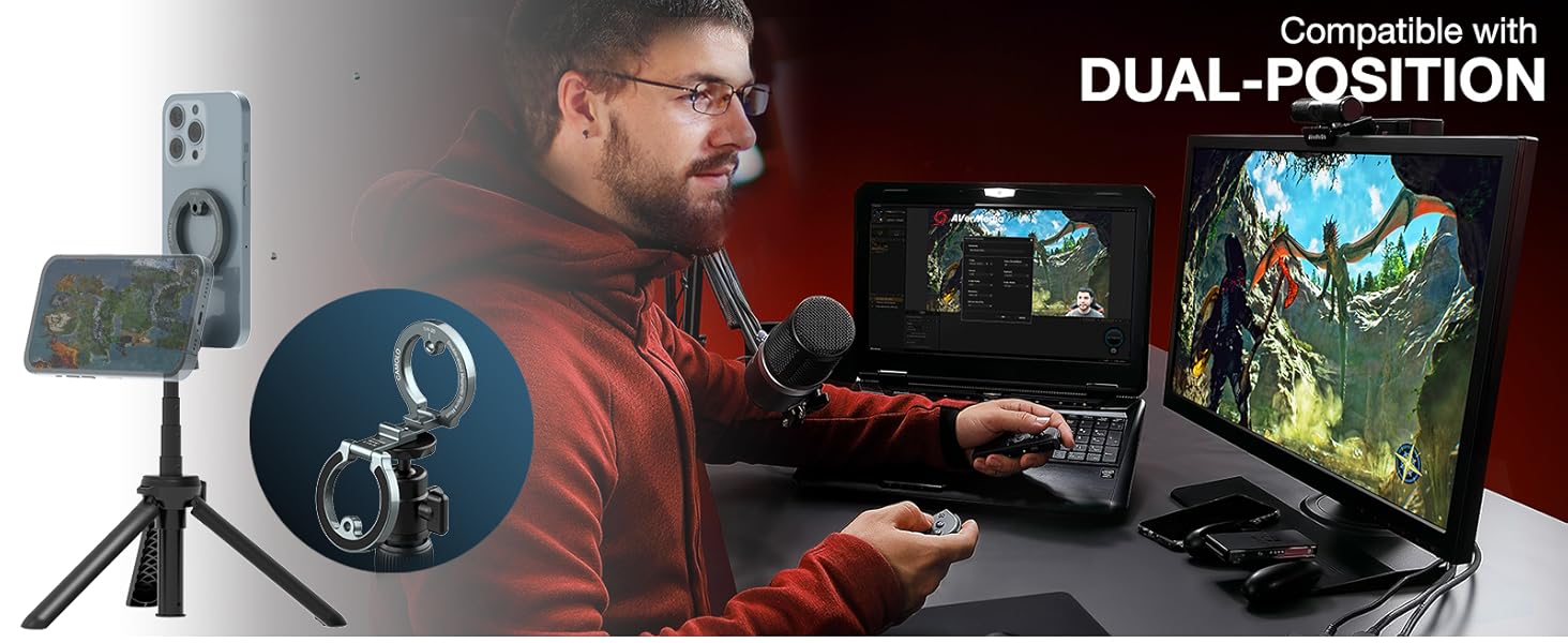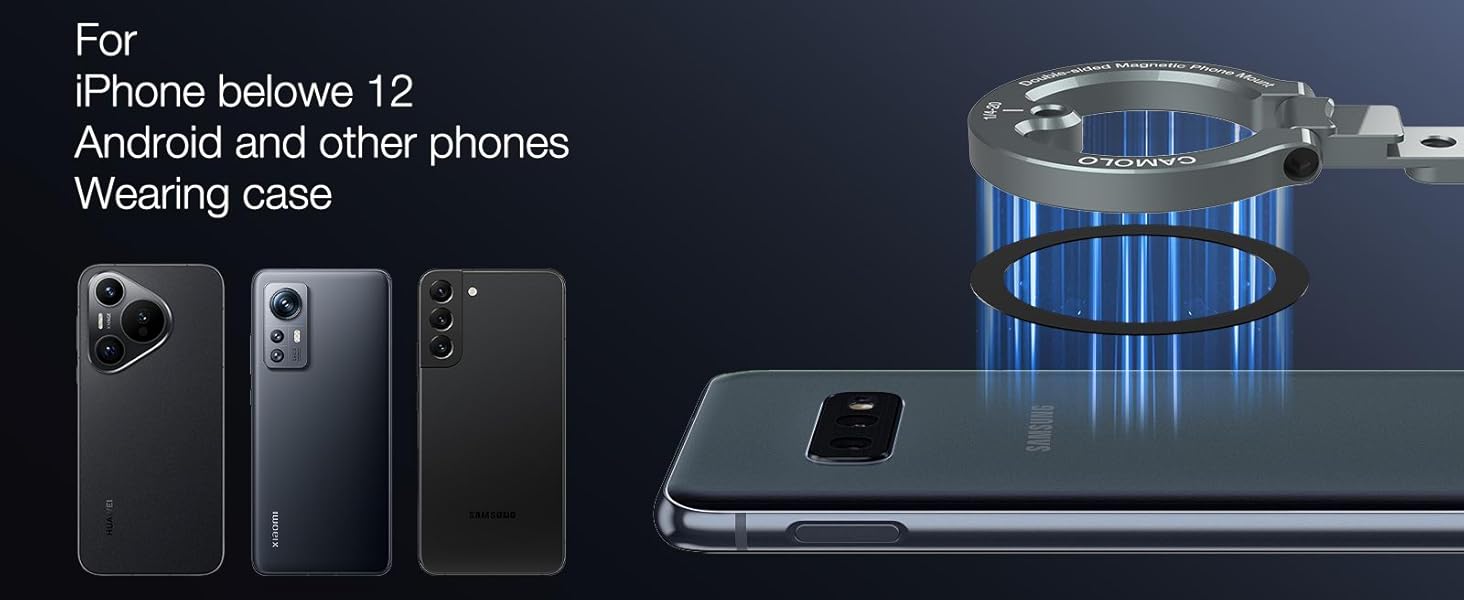 CAMOLO Dual Magnetic Phone Holder Compatiable with Magsafe iPhone 16 15 14 13 12 Pro Max Plus Series 1/4" Screw Tripod Mount Gym Magnetic Phone Stand Travel