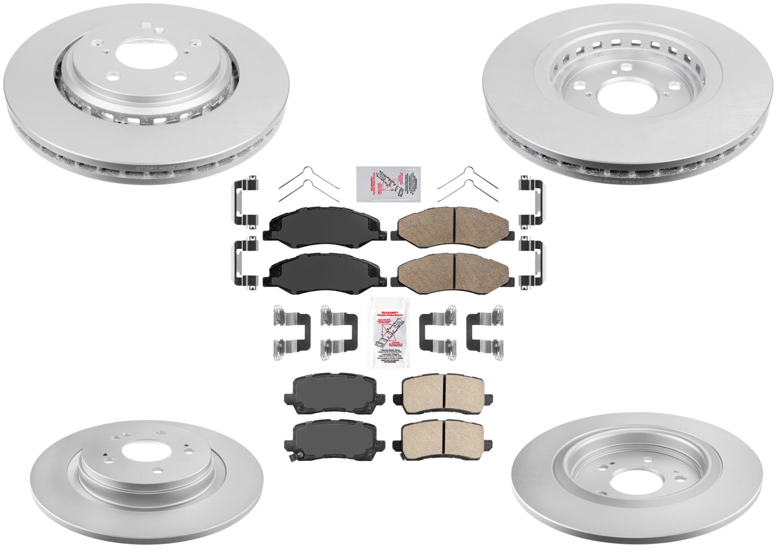 F&R Coated Rotor Brake Rotors & Ceramic Brake Pads Fits 2018-2020 Honda Odyssey