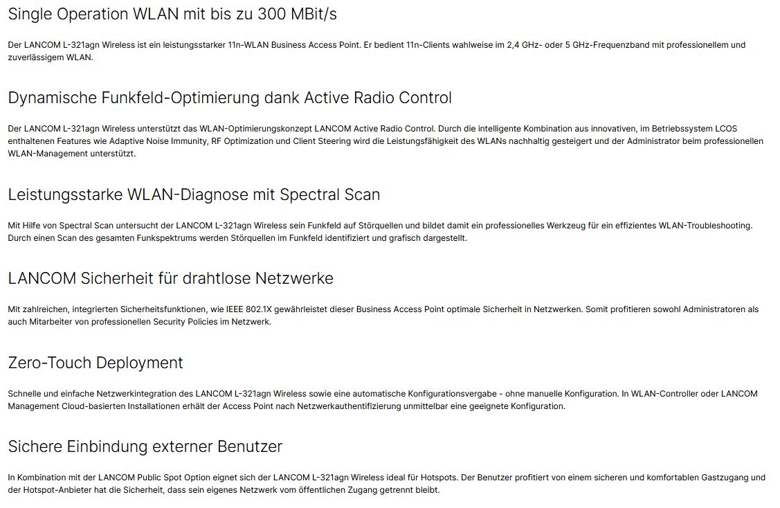Lancom Systems L-321agn Wireless AccessPointaInterne Lagernummer: KL-01