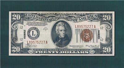 This Offer is for this Classic Rarity of a $2O.OO 1934A(Mule LA-Block)Hawaii Emergency Type Note with the"Late Finish Back Plate~#204"too..See Close-up's provided..