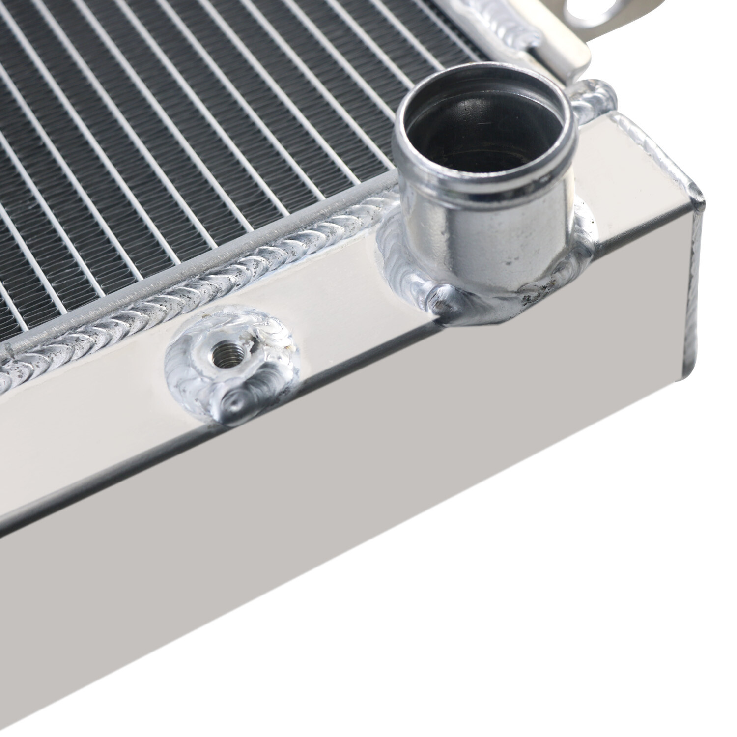 Radiator Size Row: 4 Row Core Material: AA5052 Aluminium Core and Tank: AA5052 Aluminum Core Size: 518W * 560H mm Overall Size: 531W * 666H * 70T mm Inlet/Outlet: 38/42 mm CNC Machined Billet and High Pressure Radiator Cap 1.3 Bar Radiator Drain Plug: OEM Style Brass Petcock Drain.