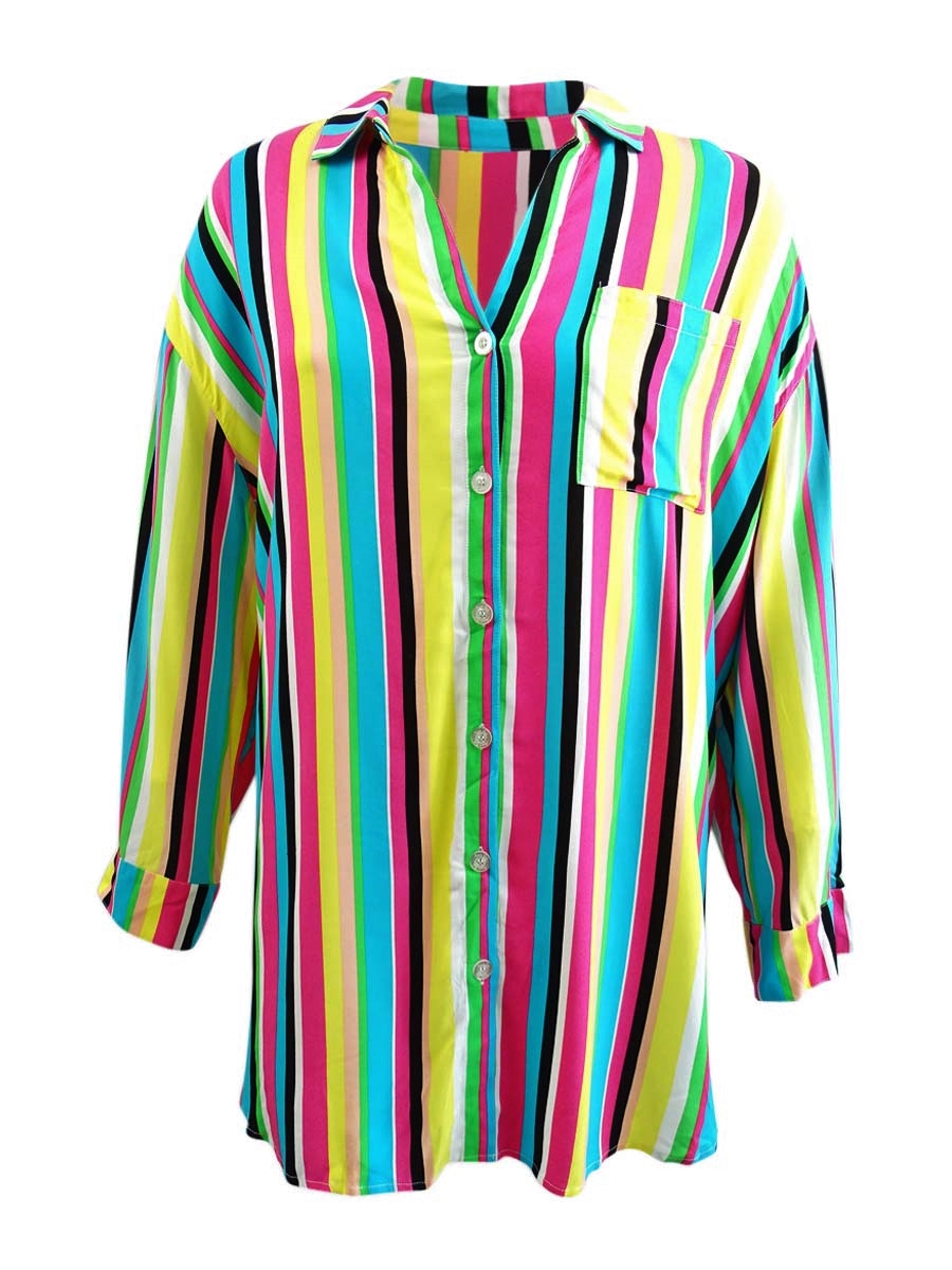 Anne Cole Women's Plus Button-Down Shirt Dress Swim Cover-Up (22/24, Multi)
