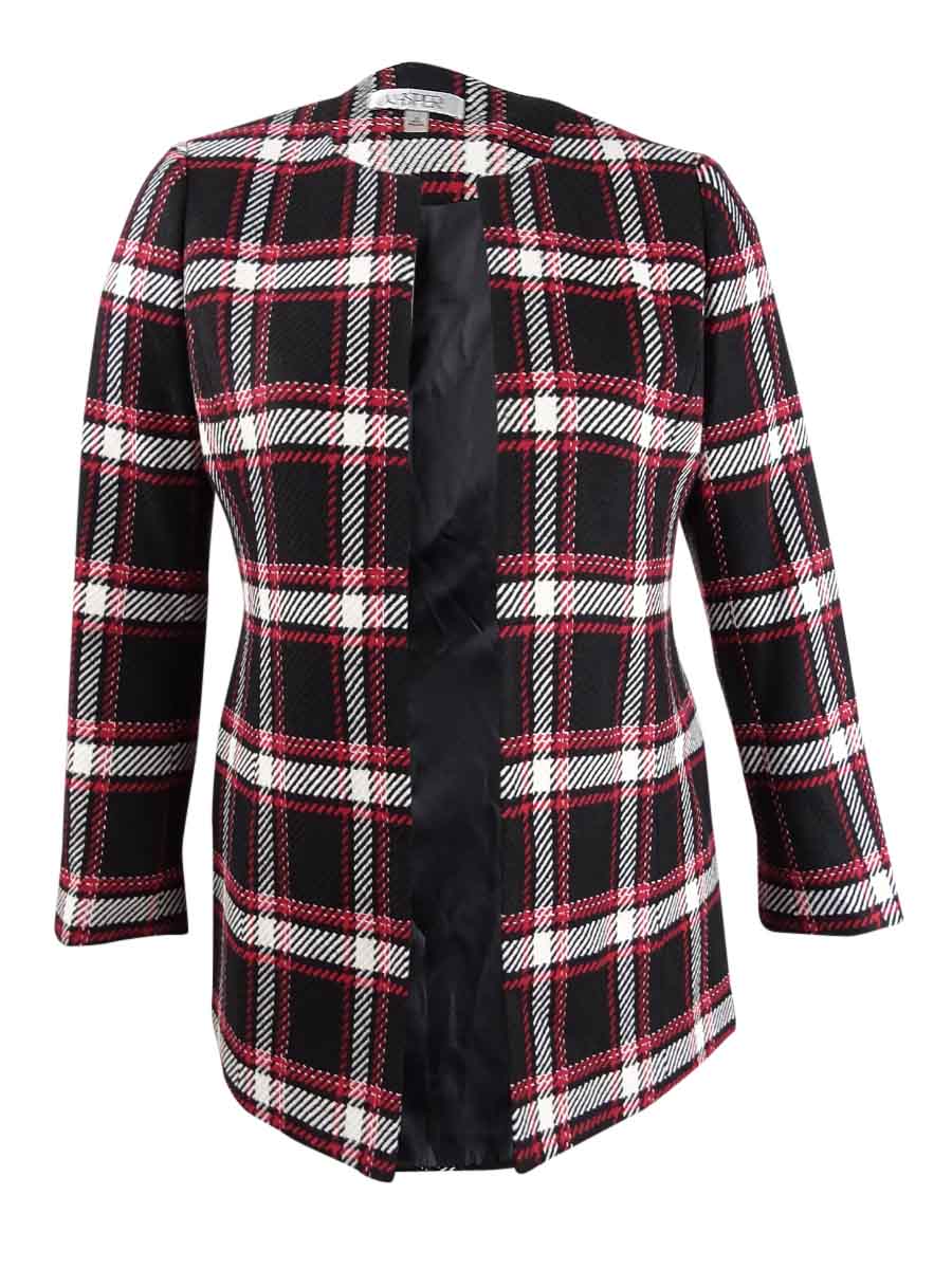 Kasper Women's Plaid Jewel-Neck Jacket (10, Fire Red Multi)