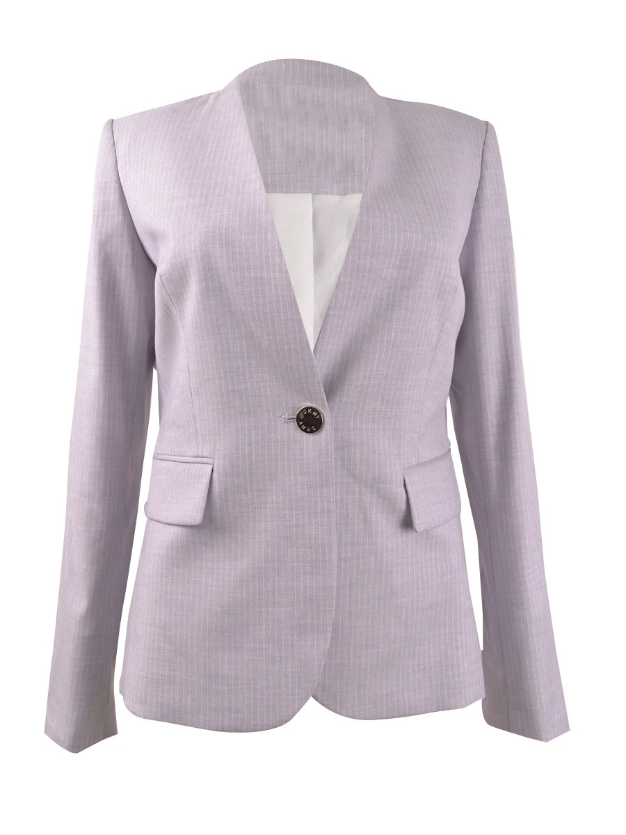 DKNY Women's Striped Collarless One-Button Blazer (2, Lavender)