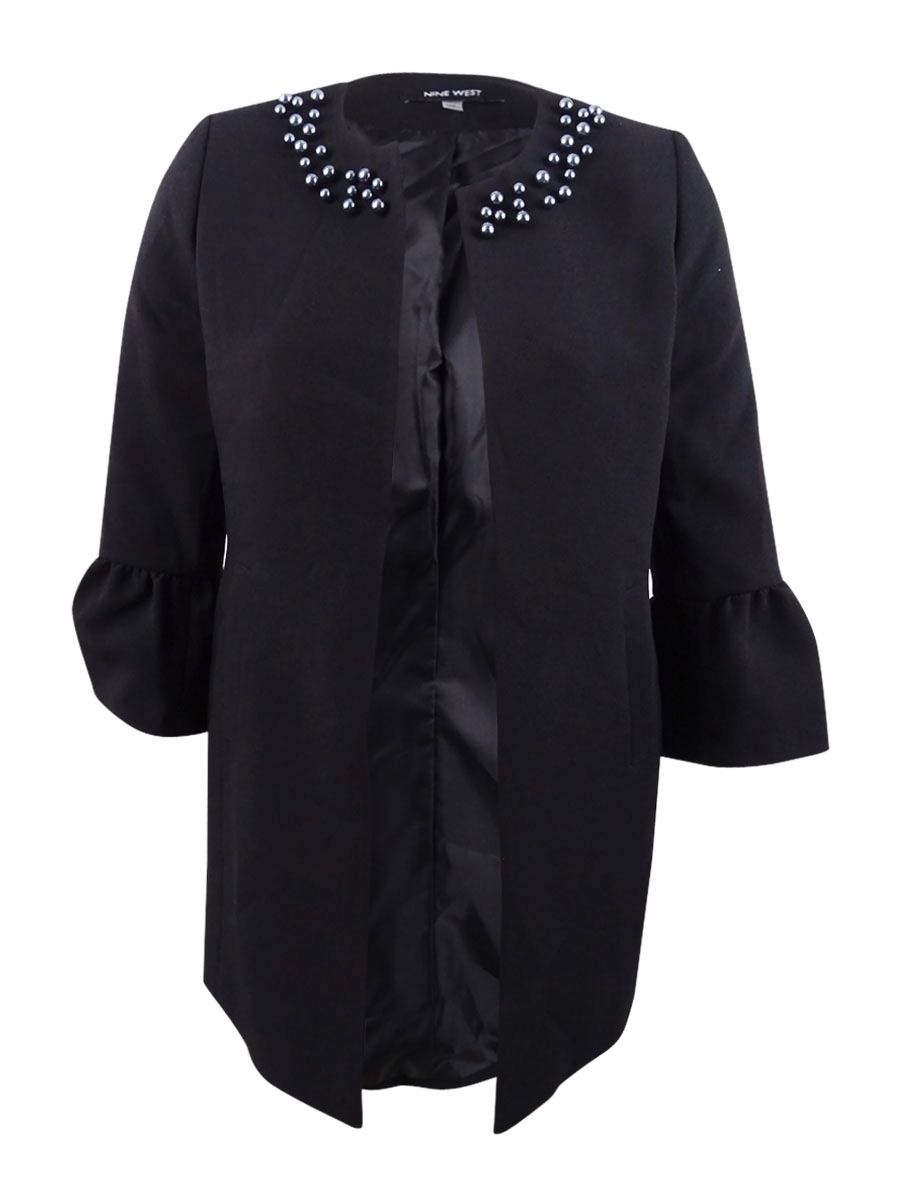 Nine West Women's Jewel-Neck Flyaway Blazer (4, Black)