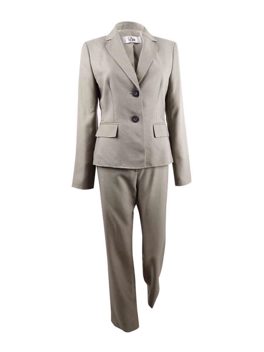 Le Suit Women's Two-Button Pantsuit (4, Cashmere/Black)