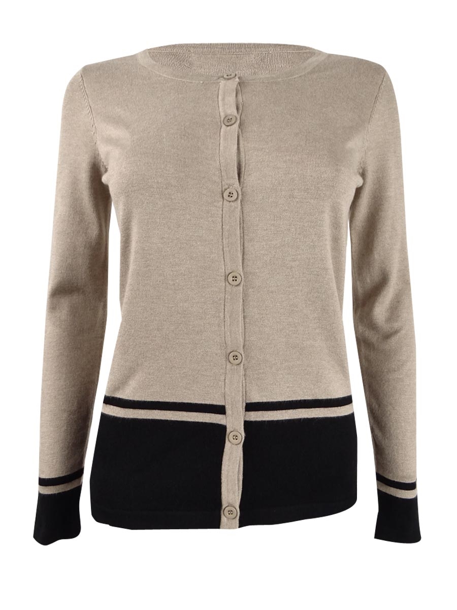 Karen Scott Women's Petite Colorblocked-Hem Cardigan (PP, Chestnut Combo)