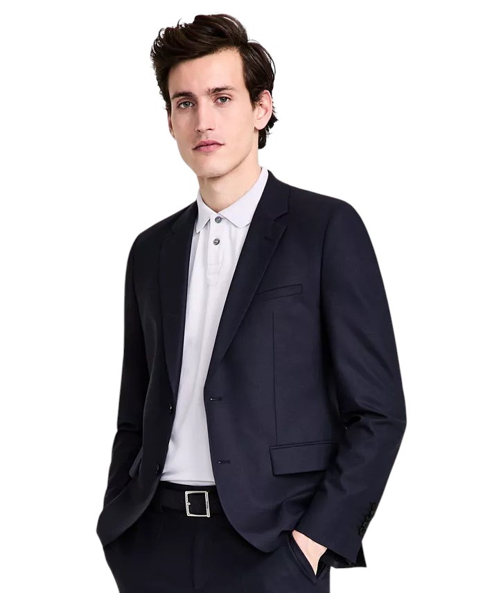 Modern-fit and memorable, this notch-lapel suit from Hugo by Hugo Boss is a stunning addition to your collection of reliable, formal ensembles.