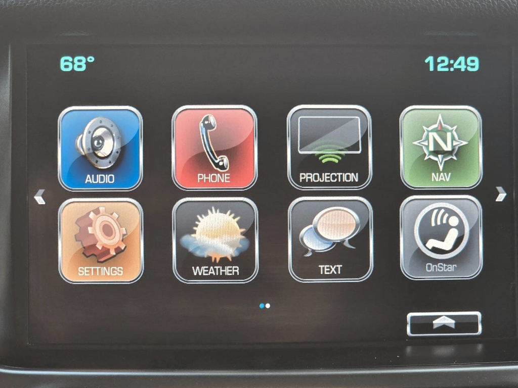 At the center of the dashboard is Chevrolet’s infotainment interface displayed on an 8.0-inch touchscreen, offering AM/FM radio, Bluetooth audio, navigation, and a rearview camera. Rear parking sensors are also included, an important aid when maneuvering a vehicle of this size. The layout is straightforward and intuitive, emphasizing ease of use rather than unnecessary complexity.