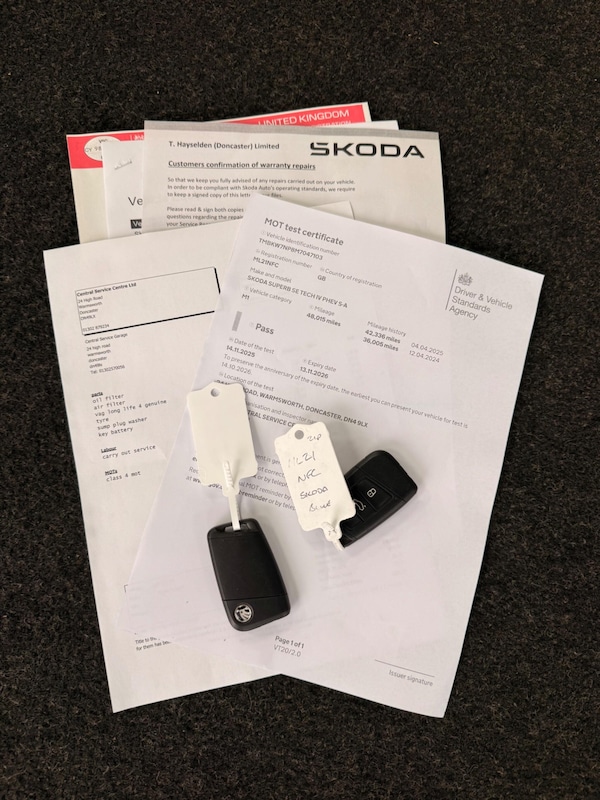 RESERVE & COLLECT - FREE 6 MONTHS RAC WARRANTY - 1 OWNER FROM NEW - SAT NAV - APPLE CARPLAY - HEATED LEATHER - BLUETOOTH - APPLE CARPLAY/ANDROID AUTO - ADAPTIVE CRUISE CONTROL - LANE ASSIST & BLIND SPOT - LOW RATE FINANCE DEALS AVAILABLE - Central Service Garage Are Delighted To Offer For Sale This Great Spec Superb Finished In Steel Grey Metallic With Complementing Full Black Heated Leather Interior. This Superb Benefits From 3 Previous Services & We Have Just Had It Independently MOT'D, Serviced And Replaced A Tyre Making It Ready To Drive Away. This SE TECH HYBRID DSG Has The Following Spec: Remote Central Locking (2xKeys), LED Headlamps, Alloy Wheels, Front & Rear Parking Sensors, Rear Privacy Glass, Adaptive Cruise Control, Lane Assist With Blind Spot Moniters, 4 Different Driving Modes - ECO - COMFORT - NORMAL - SPORT - Multi Function Steering Wheel, Auto Skoda Crystal Headlights, Memory Drivers Seat, Heated Seats, Auto Hold, Wireless Smart Link/Apple Car Play Android Auto, DAB Radio/CD, SD, Sat Nav, Bluetooth, Dual Zone Climate Control, Electric Windows & Power Fold Door Mirrors. This Car Represents Excellent Value & It Must Be Seen & Driven To Fully Appreciate The Quality On Offer. Central Service Garage Is A Family Run Business & We Take Great Pride In The Cars We Offer For Sale - 200 RESERVATION SECURES THIS CAR - RAC APPROVED DEALER - LOW RATE FINANCE DEALS AVAILABLE