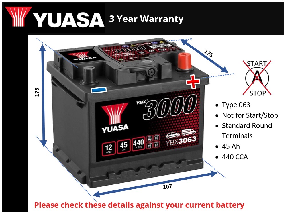 Please check battery type, dimensions, terminal polarity, and terminal type against the battery being replaced. Even if the battery shows as being compatible with your vehicle, there can sometimes be more than one option depending on individual vehicle specifications. Unfortunately, we cannot guarantee vehicle fitment using vehicle details alone.