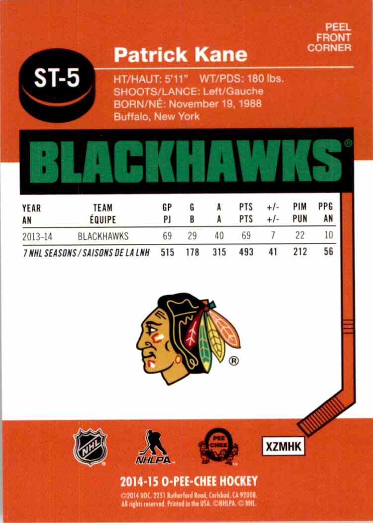 | 2014-15 O-Pee-Chee Stickers Patrick Kane #ST5 |