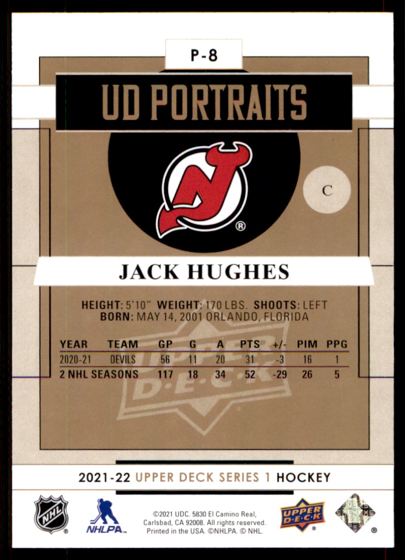 | 2021-22 Upper Deck Portraits Jack Hughes #P8 |