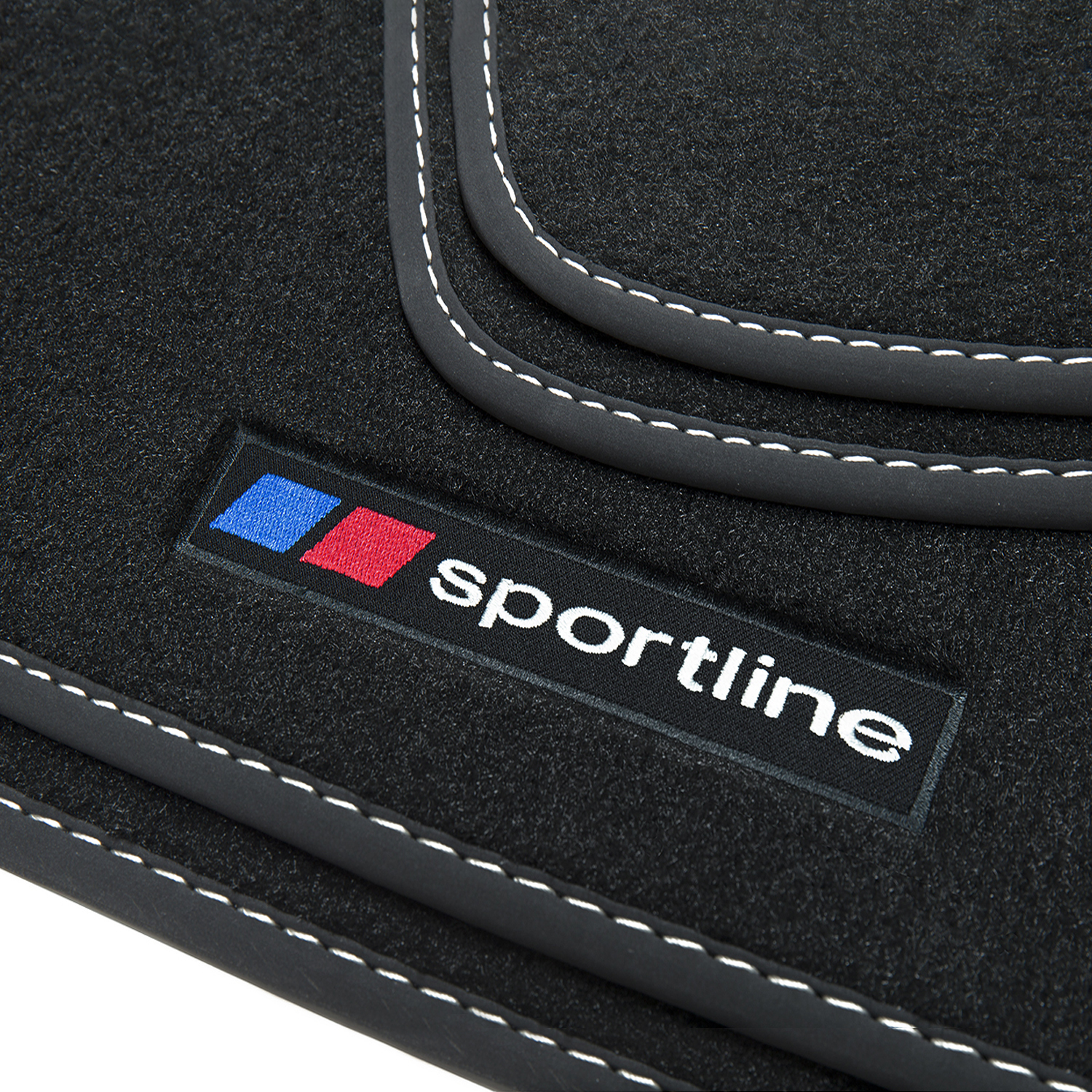 High Premium Velours Fußmatten mit Bandeinfassung, eingearbeiteten Ziernähten und gestickten "Sportline" Schriftzügen. Qualität aus Berlin!
