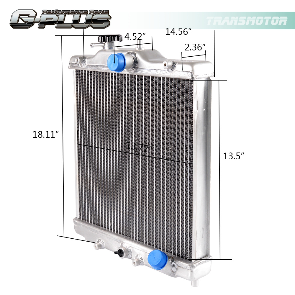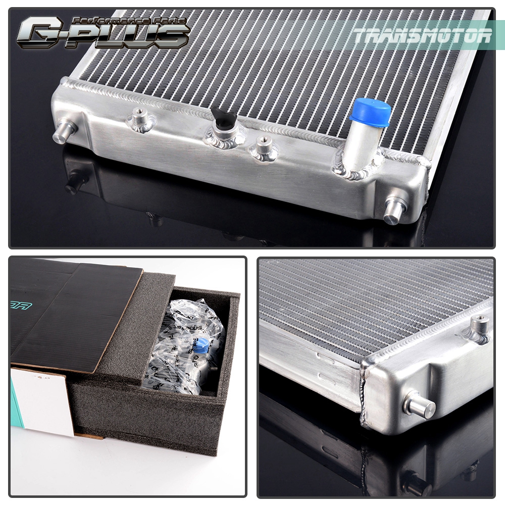 This aluminum radiator is designed to provide maximum cooling efficiency to prevent premature engine failure. Its light-weight, and high-heat transferring aluminum features a tube and fin design that, dramatically increases surface area that enables the heat to dissipate more efficiently. This Aluminum Radiator is at least 40% more efficient than stock ones. Most importantly, it has a much higher capacity for coolant than stock ones, which means that your cooling system will be more efficient and will be more resistant to temperature surges in racing applications.