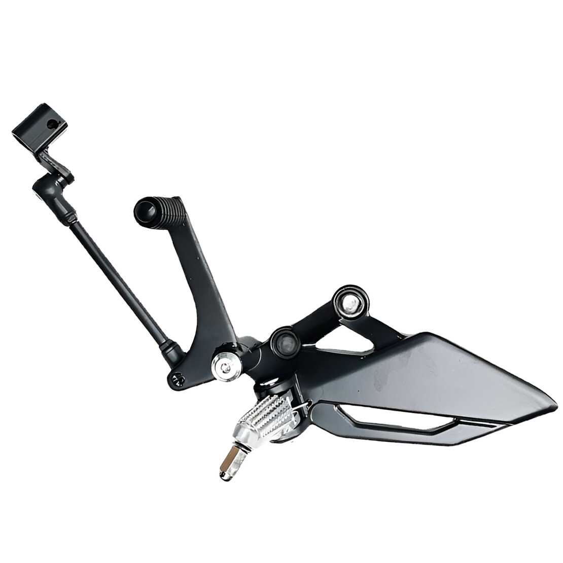 5) High torsion and stress resistance.Knurled foot pegs for a no-slip grip.Fully adjustable positioning of foot pegs to allow for more comfortable and agressive body position.