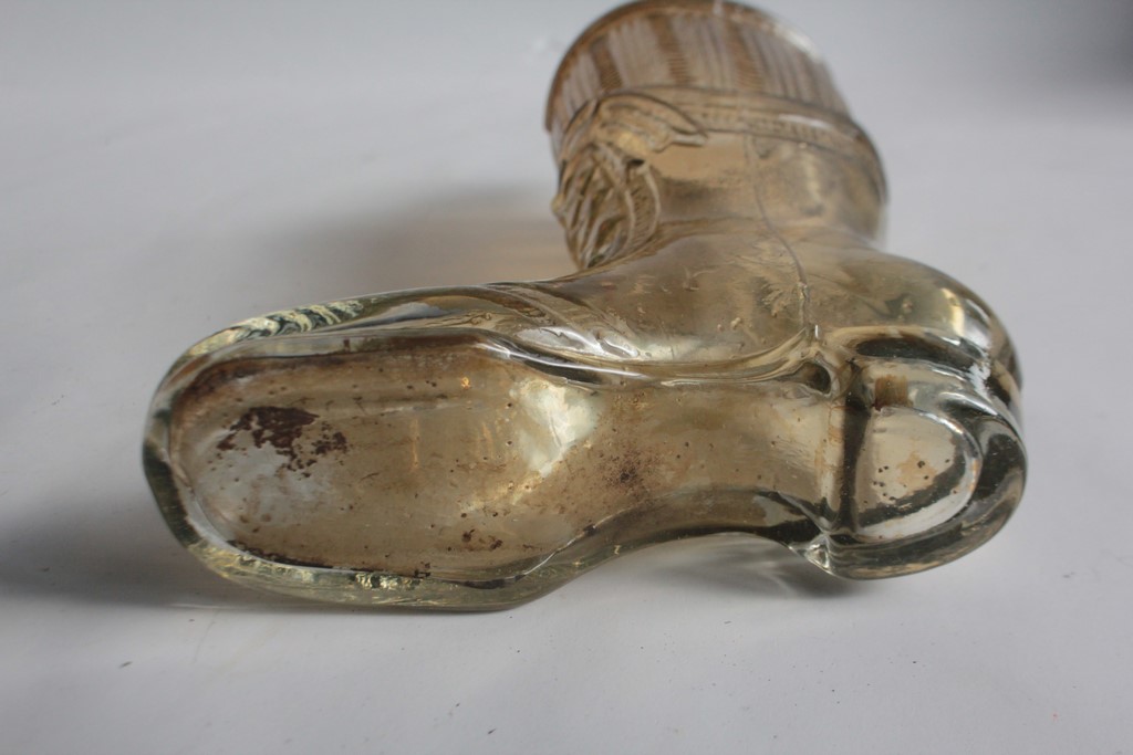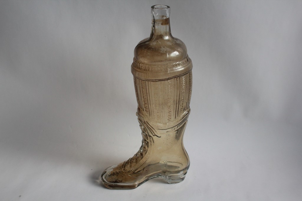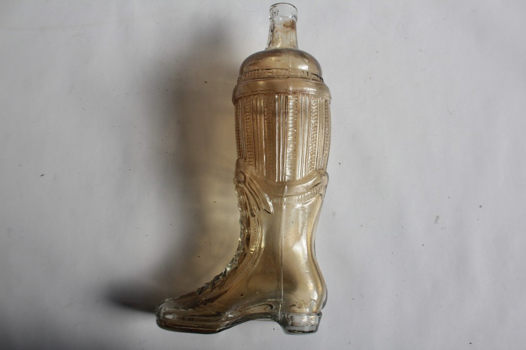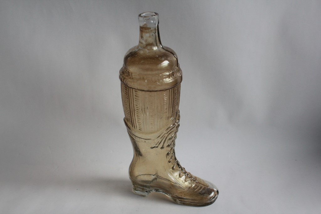 Alte Glasflasche in Form eines Schnürstiefels