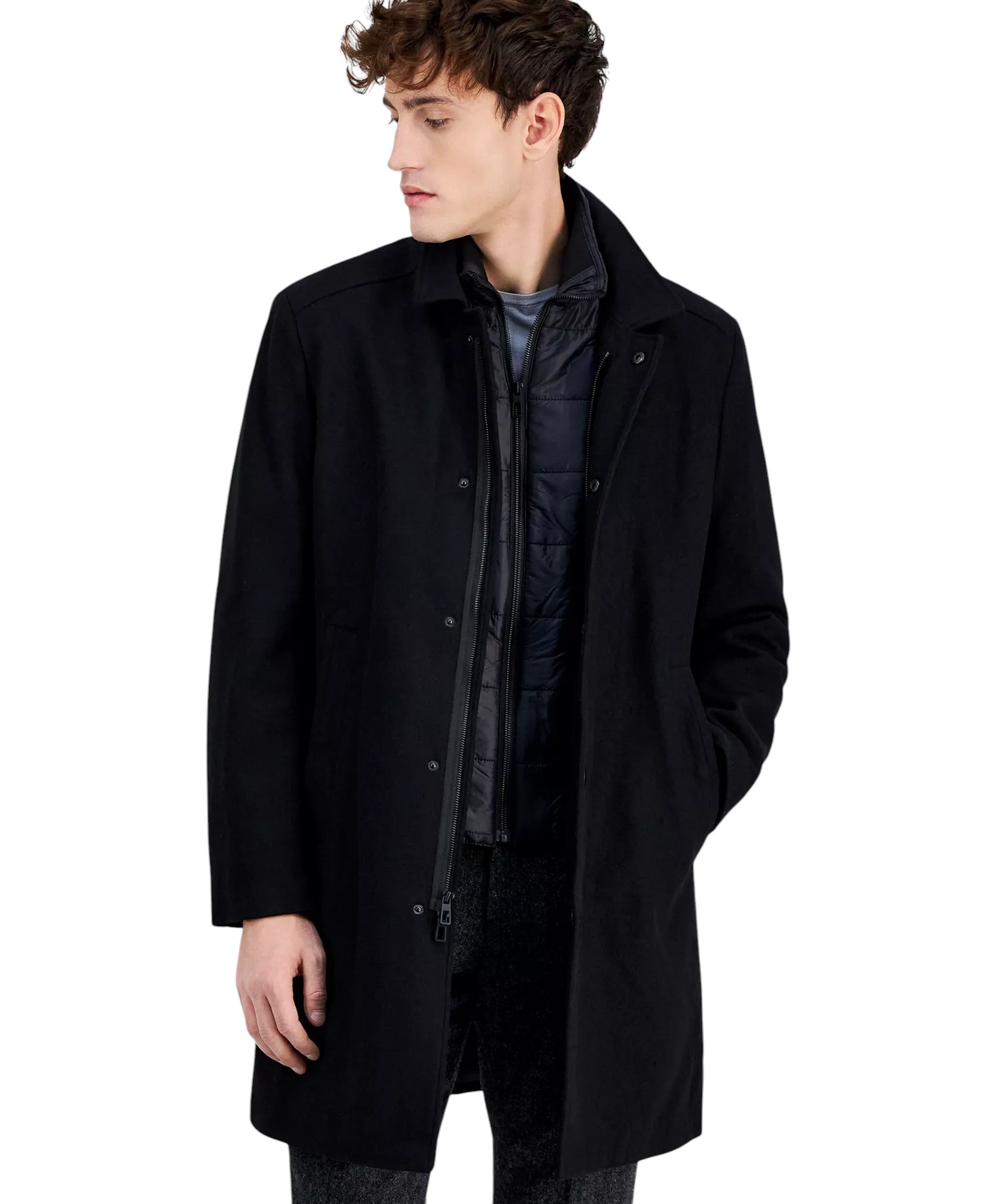Nautica Mens Classic-Fit Bib Wool Overcoat Coat Black 36 R