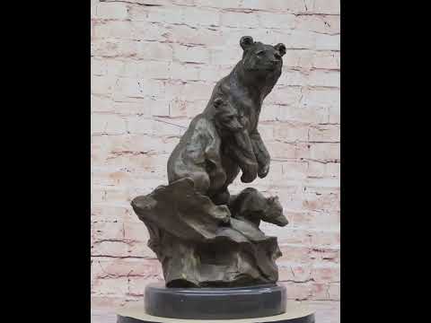 This captivating bronze sculpture depicts a mother bear standing protectively among her playful cubs, as they gather around a meandering stream in search of their next meal. With a watchful gaze, the mother bear assumes an upright position, demonstrating her keen attentiveness to the passing fish below. As her young ones eagerly observe her every move, the scene conveys a poignant narrative of maternal guidance and the nurturing instinct inherent in the animal kingdom. The carefully sculpted details capture the bears' natural poise and inquisitive expressions, evoking a sense of familial warmth and harmony within their rugged natural habitat.