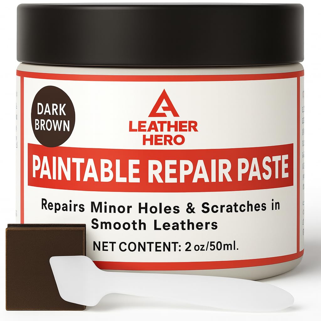 Revive your leather goods with Leather Hero Premium Leather Repair Filler, specially formulated to repair cracks, scratches, holes, and cuts in both genuine and synthetic leather. This flexible, paintable filler seamlessly blends into your leather for professional-quality results. Designed for effortless application, simply clean the surface, apply in thin layers, and let dry for about an hour. Perfect for use on shoes, couches, car seats, wallets, handbags, and more, this multi-use leather repair solution restores and preserves your leather items with ease. Leather Hero ensures high-quality, long-lasting repairs so you can enjoy your leather goods for years to come!